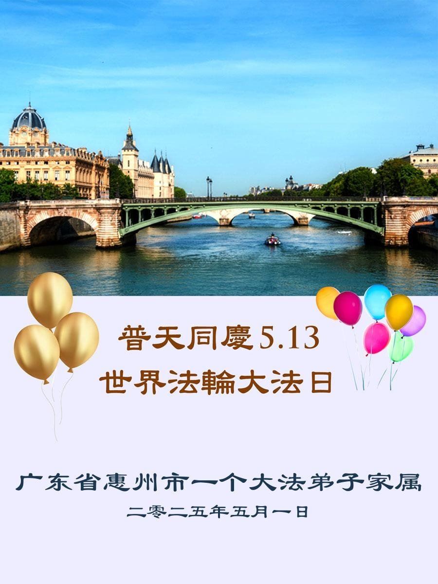 Porodica praktikanta iz okruga Huidong, provincija Guangdong, se zahvalila Učitelju: „Moja porodica je od disfunkcionalne postala takva da joj sada svi zavide, moj posao koji mi je prije stvarao samo dugove je postao profitabilan – zahvaljujući Učitelju i Falun Dafa. Sada znamo svrhu života i principe Istinitosti, Dobrodušnosti i Tolerancije. Falun Dafa je zaista dobar.“