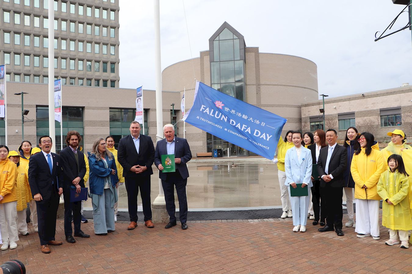 Grad Barrie u Kanadi je bio prvi grad ove godine koji je 2. maja održao ceremoniju podizanja zastave povodom Svjetskog Falun Dafa Dana. Alex Nuttall, gradonačelnik Barrieja, je podigao zastavu u povodu Falun Dafa Dana sa praktikantima i uzviknuo "Falun Dafa je dobar" s predstavnicima drugih izabranih zvaničnika tokom događaja.