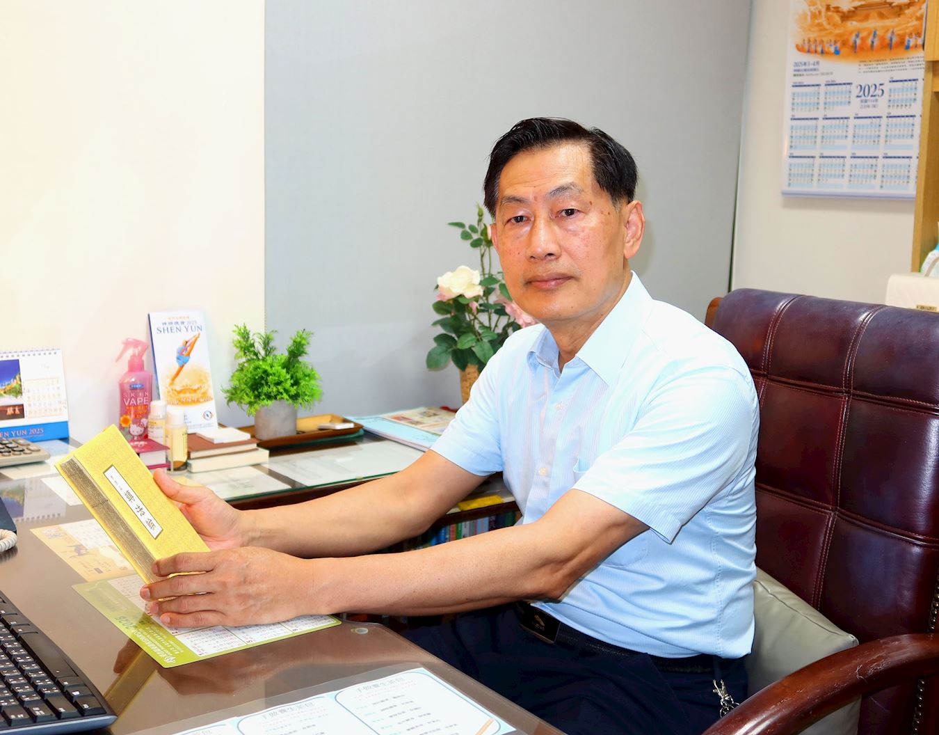 Pre četiri godine, počeo je da sarađuje sa jednim univerzitetskim profesorom na organizovanju seminara, deleći svoja iskustva o fizičkim i mentalnim dobrobitima praktikovanja Falun Gonga iz svojih profesionalnih perspektiva. Do danas su održali 55 seminara širom Tajvana. On procenjuje da se, u proseku, deset ljudi prijavi za devetodnevni Falun Gong kurs posle svakog seminara, uključujući mnoge iz mejnstrim i tehnološke industrije, i počnu da praktikuju. Ovi seminari se i dalje održavaju.