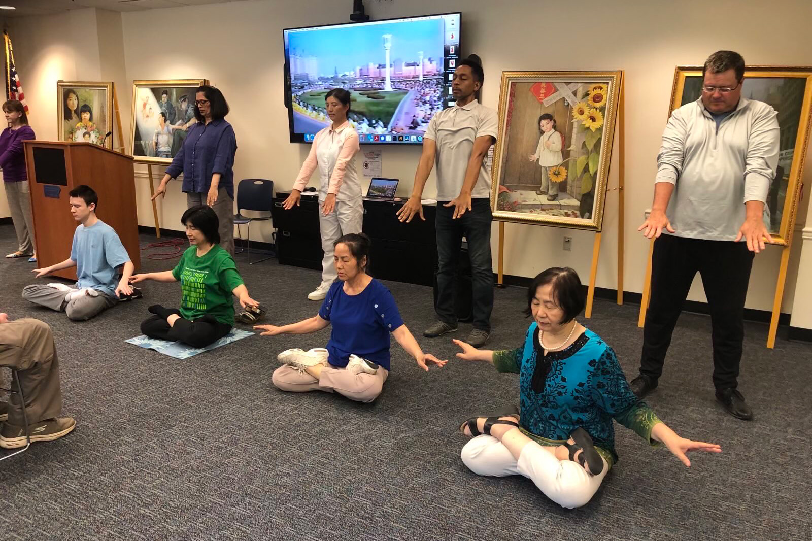 Džim Giragosian, domaćin događaja, pozdravio je prisutne i predstavio Falun Dafu: duhovnu praksu sa pet laganih vežbi koja sledi principe Istinitosti, Blagosti i Trpeljivosti. Falun Dafa se nekada naširoko praktikovala u Kini. Međutim, KPK je 1999. godine započela progon Falun Dafe širom zemlje i progoni praktikante. Gnusna dela KPK su se proširila na Sjedinjene Države, uključujući tajne kineske agente koji uznemiravaju praktikante Falun Dafe, upućuju pretnje i uništavaju ličnu imovinu. KPK takođe koristi praktikante Falun Dafe u Kini za ropski rad u proizvodnji robe koja se prodaje u američkim prodavnicama.