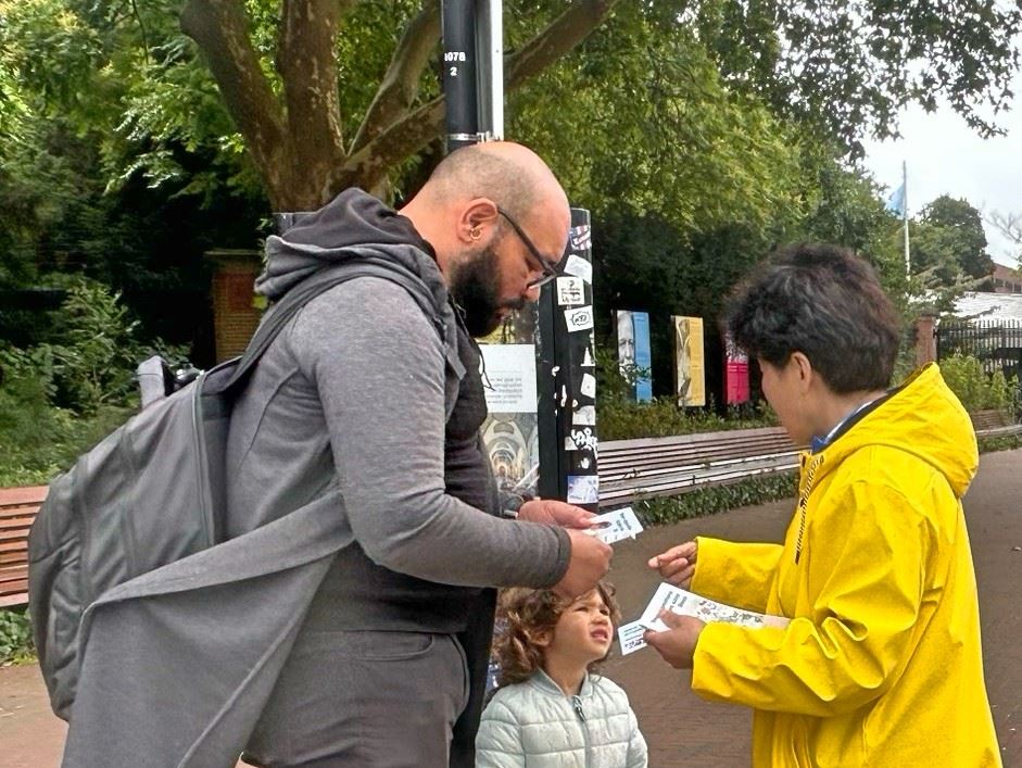 Damijan je ekolog iz Poljske koji često putuje po svetu. Nakon što je pročitao informacije na panoima, rekao je praktikantima: „Bio sam u mnogim zemljama – Japanu, Tajlandu – a bio sam i u Kini. Čuo sam za vađenje organa. Ovo je veliki greh, mora se zaustaviti – prestanite, prestanite, prestanite!“