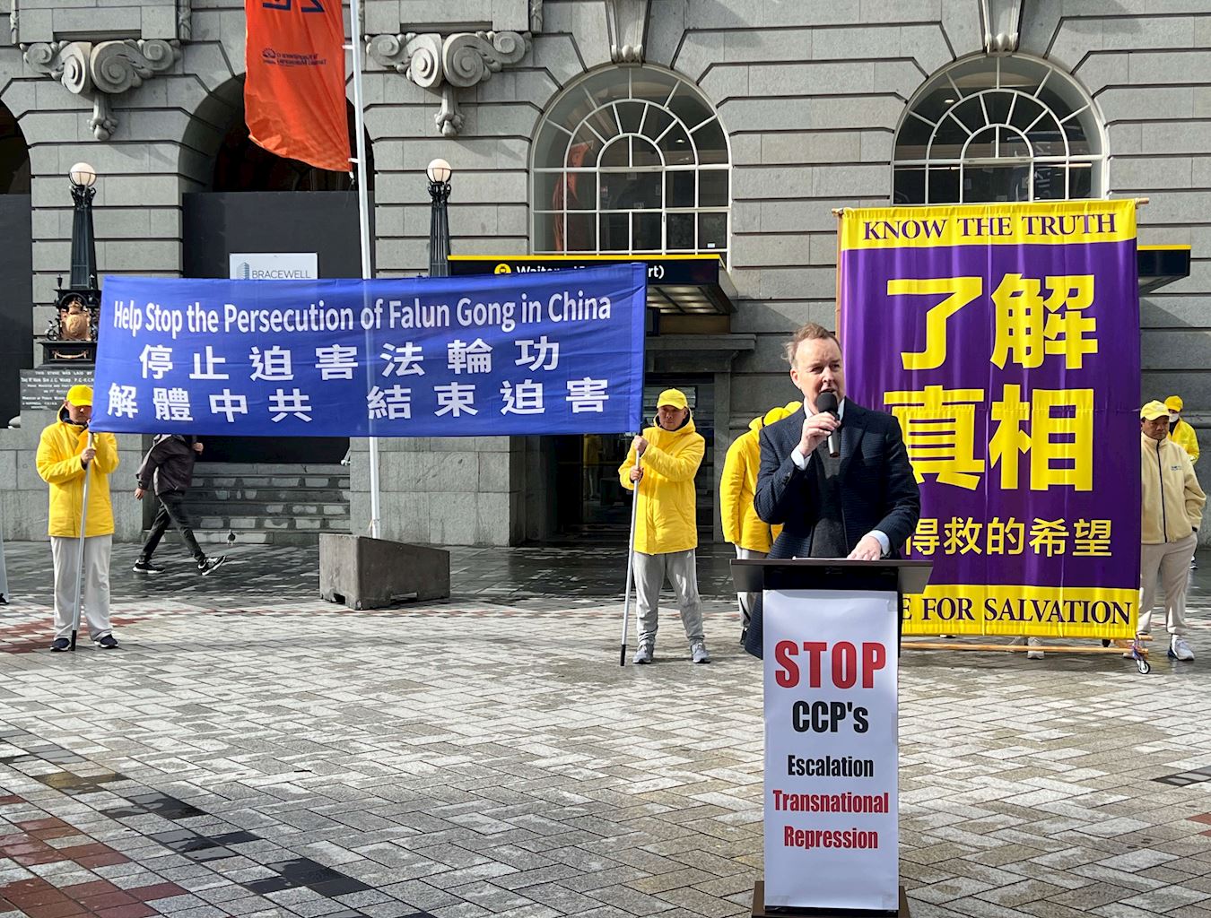 Peter Dormon, predsjednik organizacije Prijatelji Tibeta - Novi Zeland, je rekao da praktikanti Falun Gonga odbijaju slijediti naredbe KPK jer mogu samostalno razmišljati. Na skupu je rekao: „Danas odajemo počast svim praktikantima Falun Gonga koji su pretrpjeli mučenja i zatvaranje KPK i izgubili svoje važne organe (protiv svoje volje).“