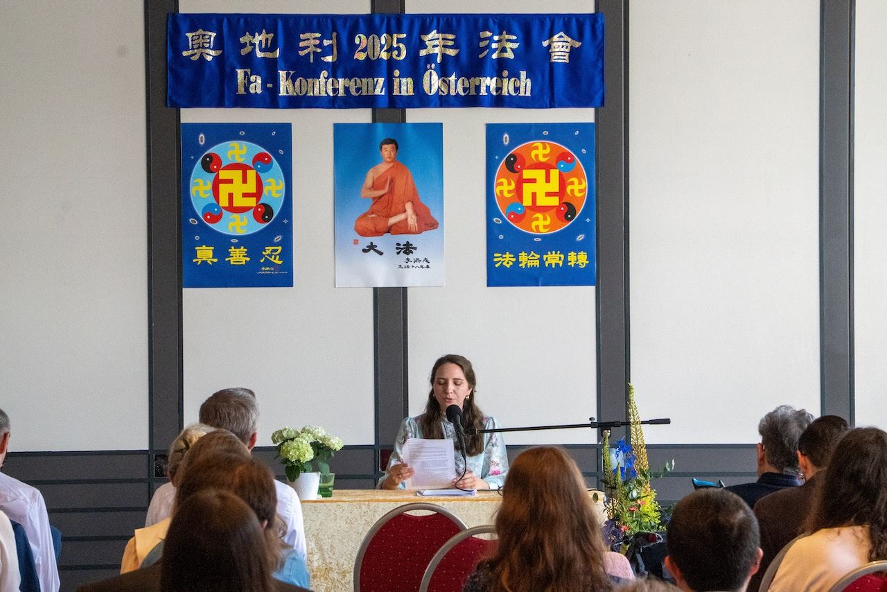 Tijekom 23. godišnje austrijske Falun Dafa konferencije za razmjenu iskustava održane u St. Pöltenu 28. lipnja, petnaest praktikanata govorilo je o svojim iskustvima u kultivaciji. Iako je svaka priča bila drugačija, zajednička tema u svim iskustvima bila je kako su praktikanti imali koristi od Dafa principa Istinitosti-Suosjećanja-Tolerancije, kao i od izvođenja pet vježbi. Također su istaknuli da su vrlo zahvalni Učitelju Li-u, osnivaču Falun Dafa.