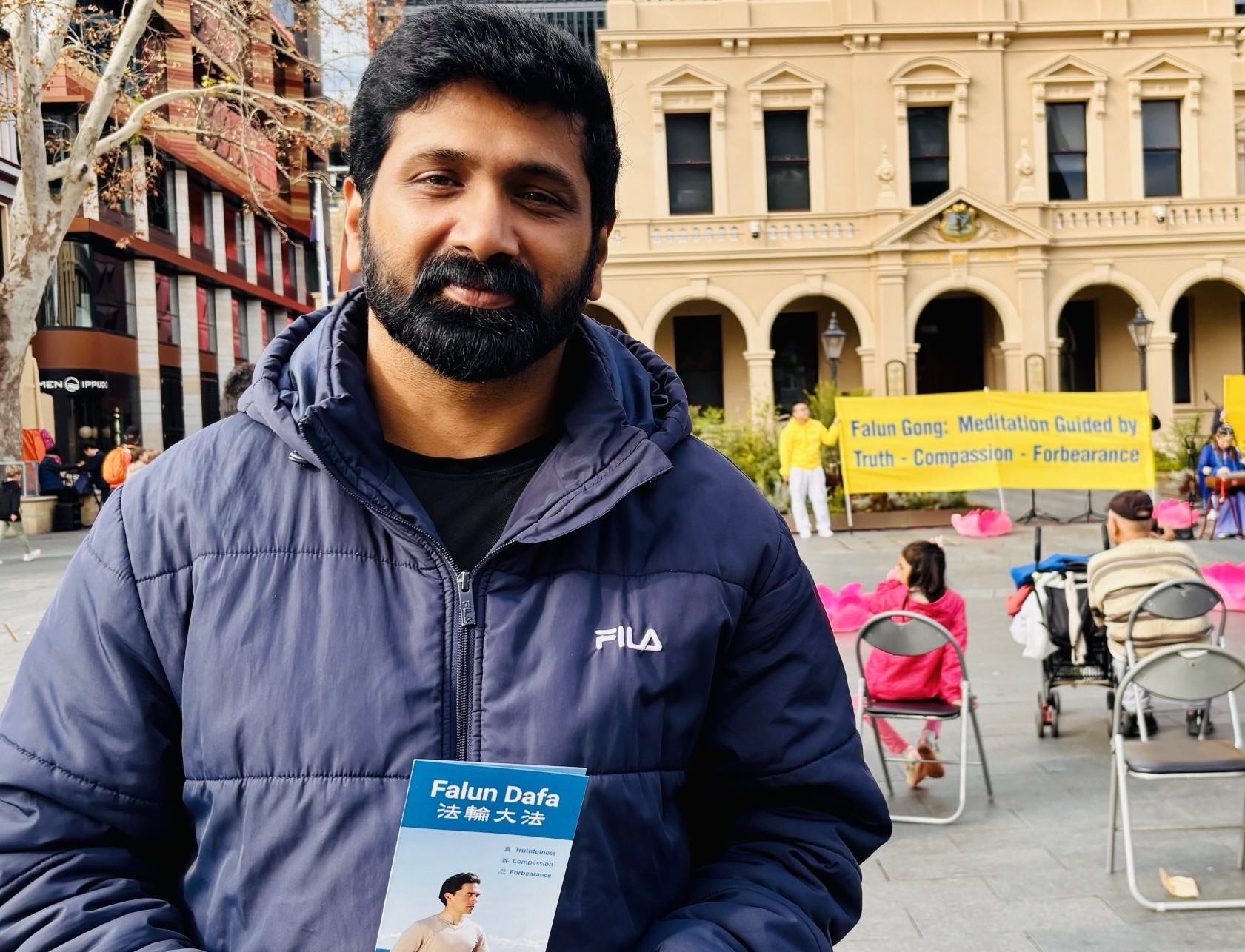 Syam Mohan je došao u Sydney iz Indije prije dvije godine i radi u zgradi na Parramatta Squareu. Prijatelj mu je pričao o Falun Dafa i aktivnostima.
