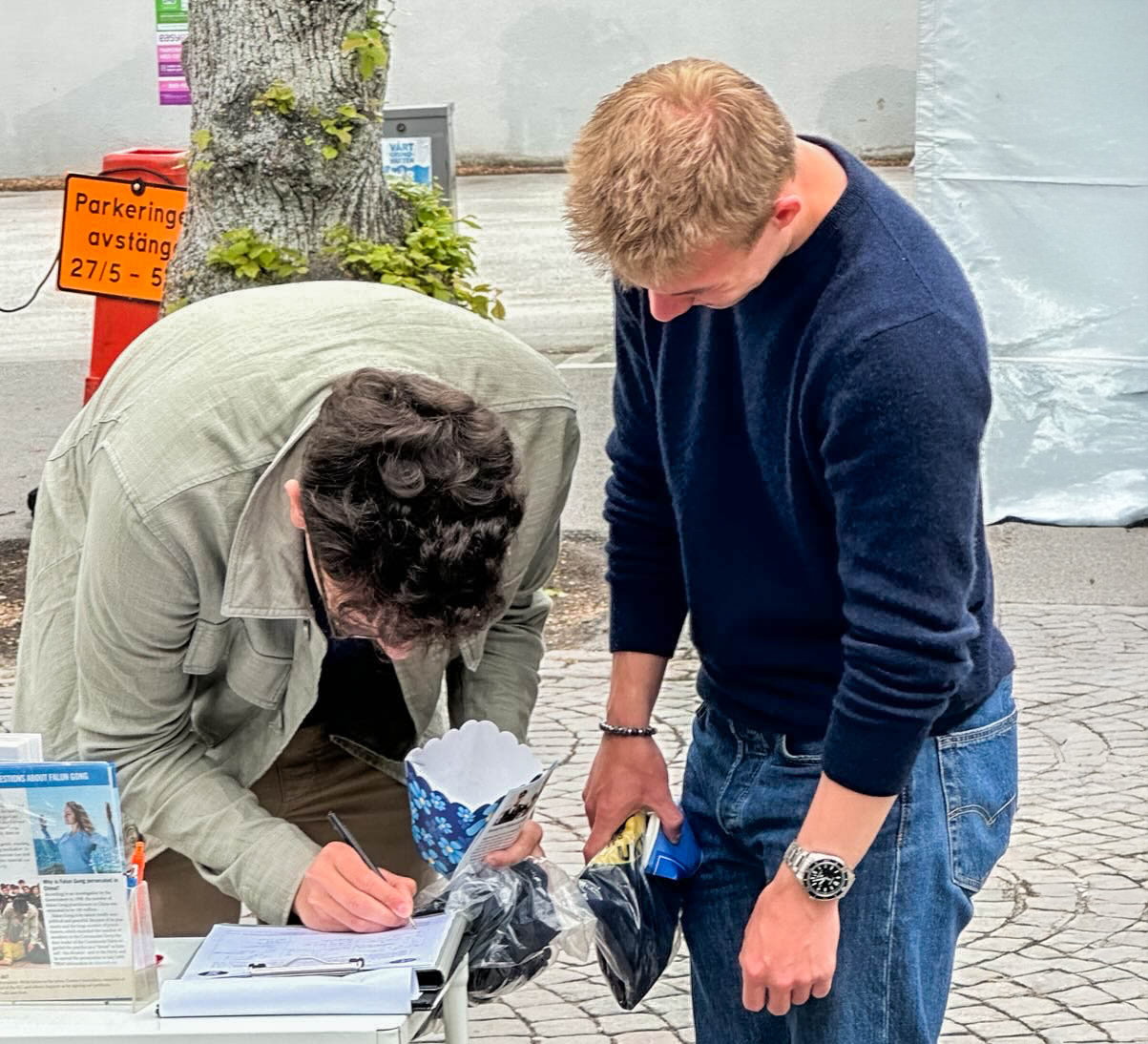 Praktikanti su predstavili Falun Gong (Falun Dafu) i obavestili ljude o 26-godišnjem progonu od strane Komunističke partije Kine (KPK). Njihovi napori su privukli pažnju i podršku brojnih švedskih političara i javnosti.