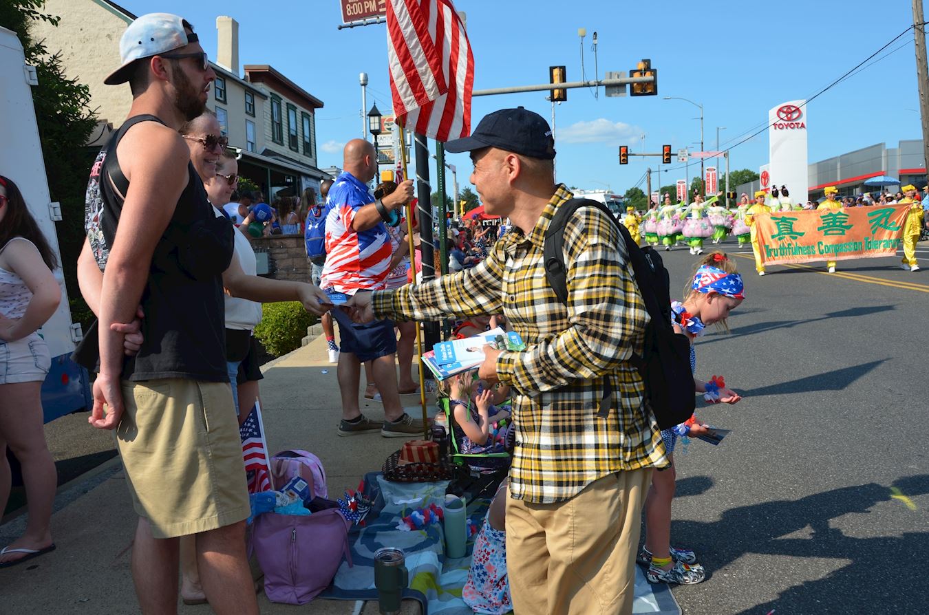 Philadelphia, rodno mjesto Deklaracije o neovisnosti, i njezino predgrađe Glenside, održali su 4. srpnja velike parade u čast 249. Dana neovisnosti. Praktikanti Falun Dafa bili su pozvani na oba događaja kako bi se pridružili svečanostima zajedno s drugim sudionicima odjevenim u razne etničke kostime. Tim praktikanata koji su svirali bubnjeve oko struka i grupa lotosovog cvijeta doputovali su iz New Yorka kako bi sudjelovali i bili su dobro primljeni od strane gledatelja.