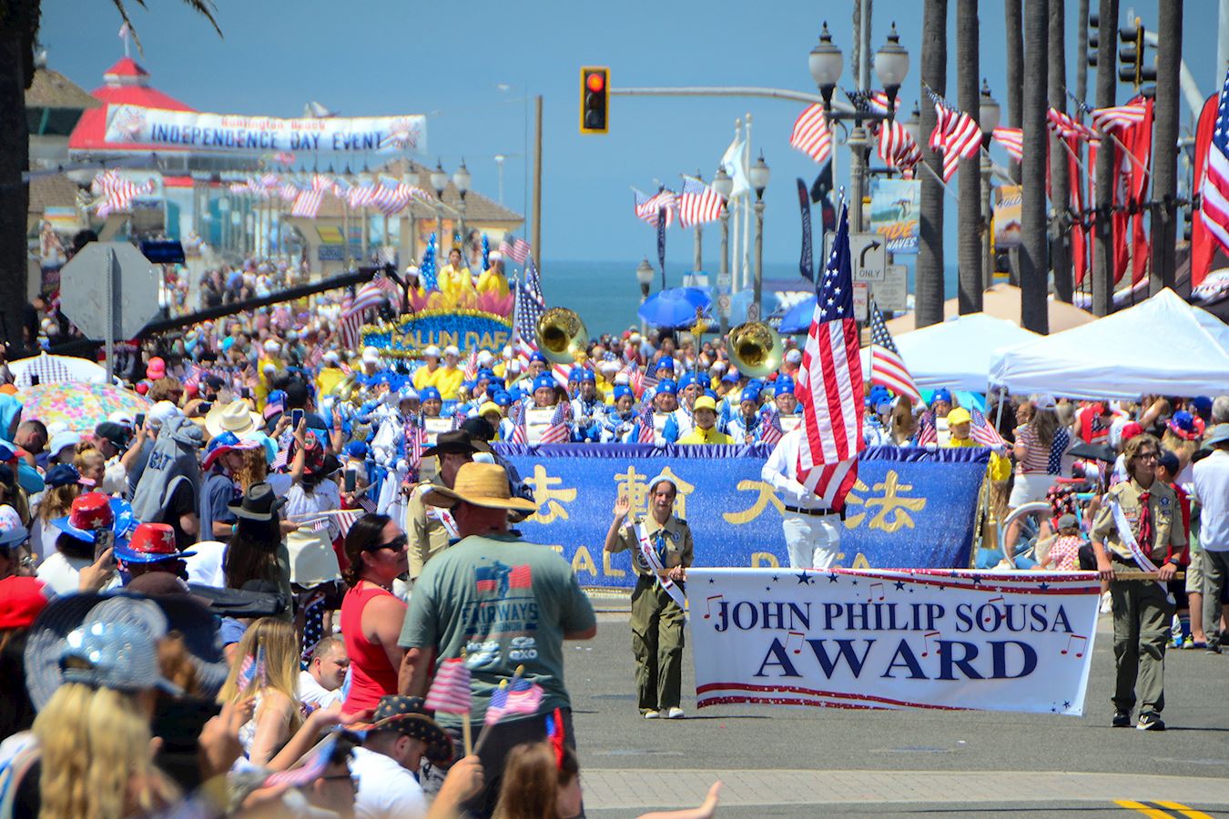 Hiljade ljudi je stajalo duž rute parade povodom 4. jula u Hantington Biču, najveće parade povodom Dana nezavisnosti na zapadu Sjedinjenih Država. Marširajući orkestar Tjen Guo, jedan od 232 učesnika parade, dobio je nagradu „Džon Filip Suza” kao priznanje za svoju izvanrednu muziku i izuzetan doprinos.