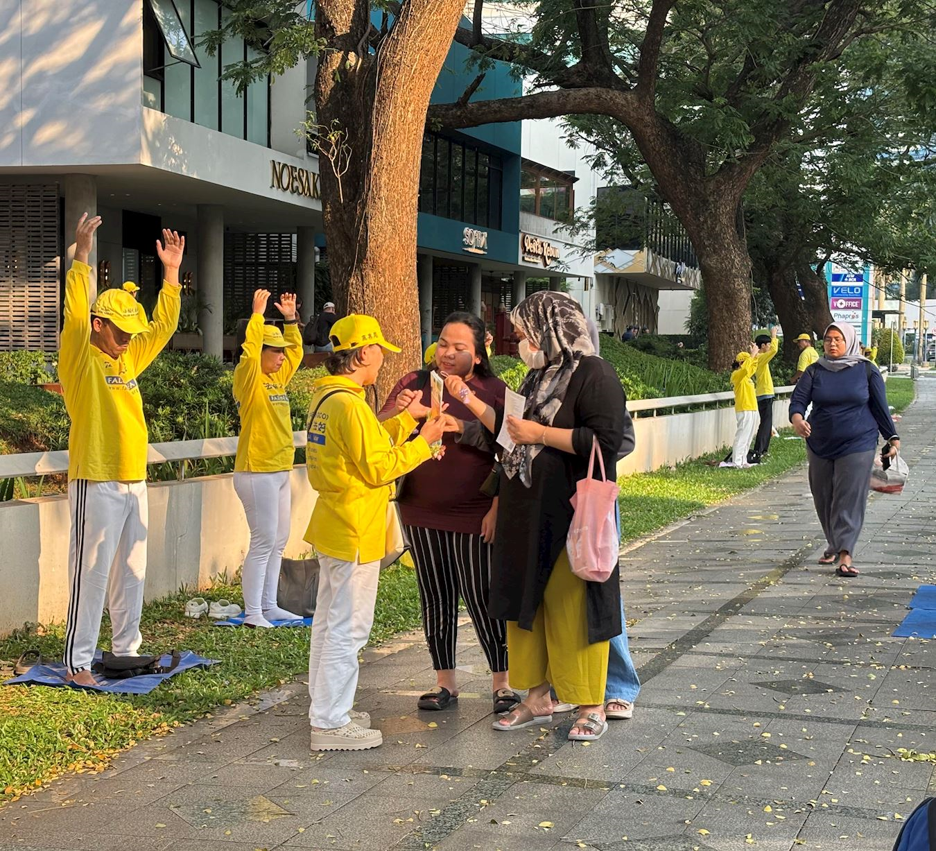 Čovek iz Kine koji radi u tom području posmatrao je aktivnosti i izrazio iznenađenje kada je saznao da se Falun Gong praktikuje u Indoneziji. Takođe je izrazio podršku mirnom mitingu praktikanata. „Bio sam zadivljen kada sam video praktikante kako ovde rade vežbe. Nisam znao da se Falun Gong praktikuje u ovoj zemlji,“ rekao je.