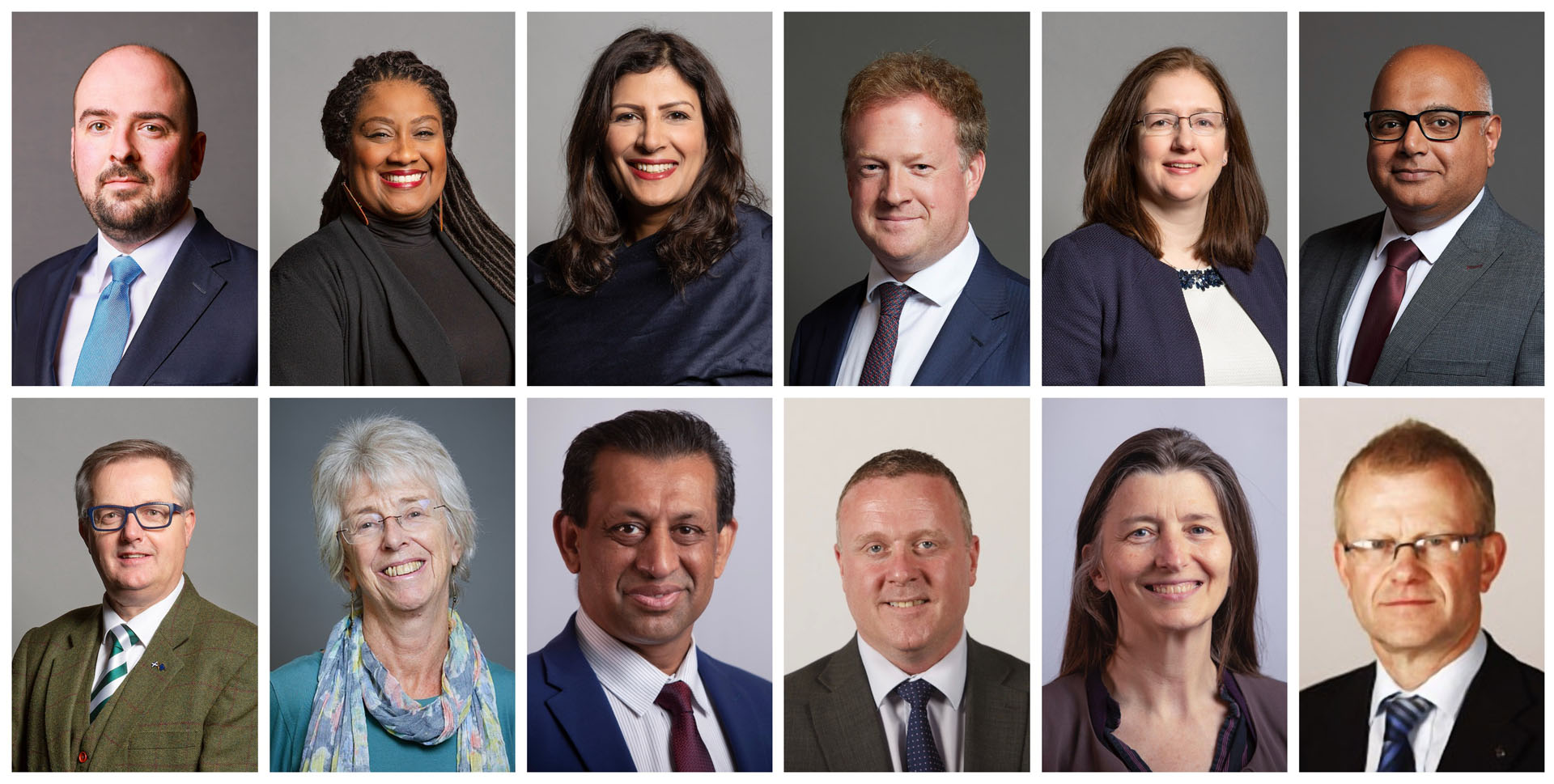 Gornji red (s leva na desno): The Rt. Hon. Ričard Holden, poslanik, opozicioni bič (Donji dom) i ministar finansija u senci; Bel Ribeiro-Adi, poslanica; Prit Kaur Gil, poslanica; Gregori Džejms Staford, poslanik; dr Kerolajn Džonson, poslanica; i Begi Šanker, poslanik.