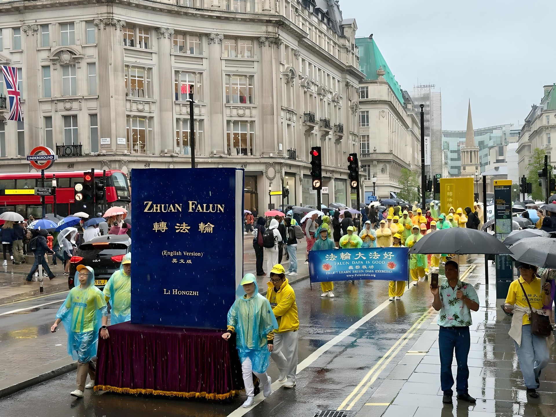 Aktivnosti su se sastojale od mitinga i dva marša. Prvi marš je počeo u podne ispred kineske ambasade. Predvođen evropskim Tian Guo marširajućim orkestrom, marš je prošao kroz prometnu londonsku ulicu Oksford, Pikadili Cirkus, Kinesku četvrt i severnu obalu reke Temze, i stigao na Trg Parlamenta u 13:30.