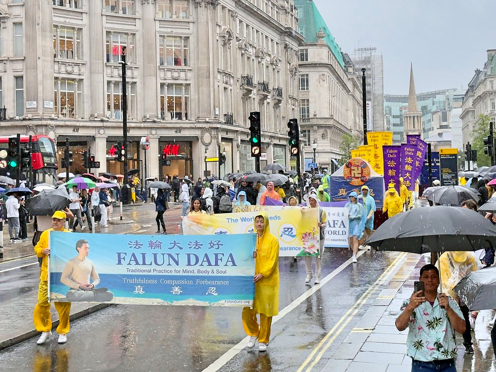 Praktikanti Falun Gonga održali su miting i marš u Londonu 19. jula 2025, u znak protesta protiv 26-godišnjeg progona od strane Komunističke partije Kine (KPK) i njene transnacionalne represije.