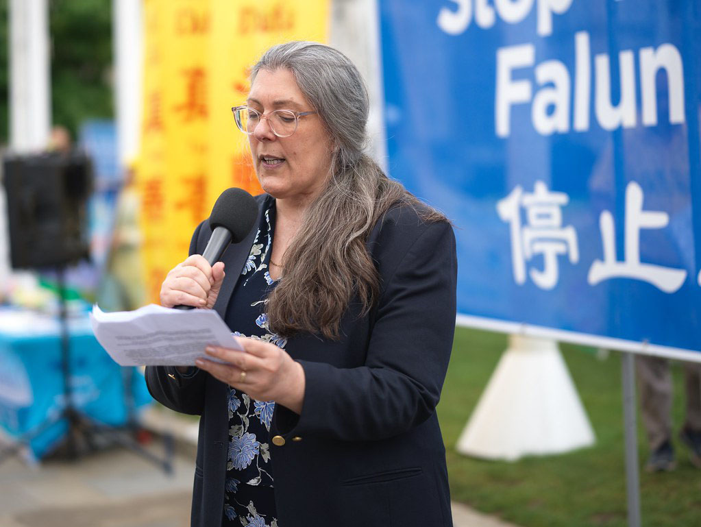 „Pohvaljujemo Predstavnički dom SAD što je u maju ove godine usvojio Zakon o zaštiti Falun Gonga“, rekla je. „Ovaj zakon se suprotstavlja zločinima KPK u vidu žetve organa od živih ljudi i podstiče međunarodnu saradnju na razotkrivanju i suprotstavljanju progonu Falun Gonga od strane KPK putem sankcija i viznih ograničenja.
