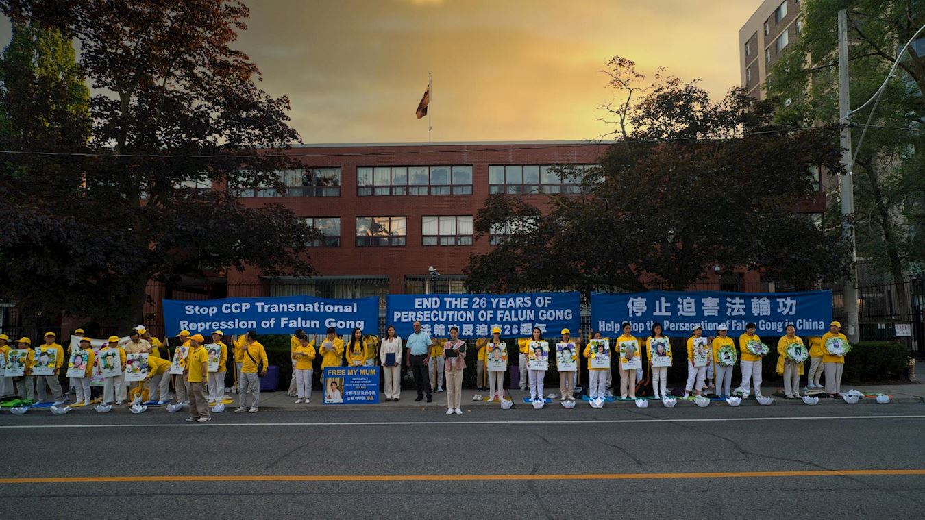 Falun Gong praktikanti su, uveče 20. jula 2025. godine, održali konferenciju za štampu ispred Kineskog konzulata u Torontu. Pozvali su zakonodavce i narod da osude i pomognu u okončanju progona od strane Komunističke partije Kine (KPK). Također su podsjetili sve da KPK provodi transnacionalnu represiju i u Kanadi.