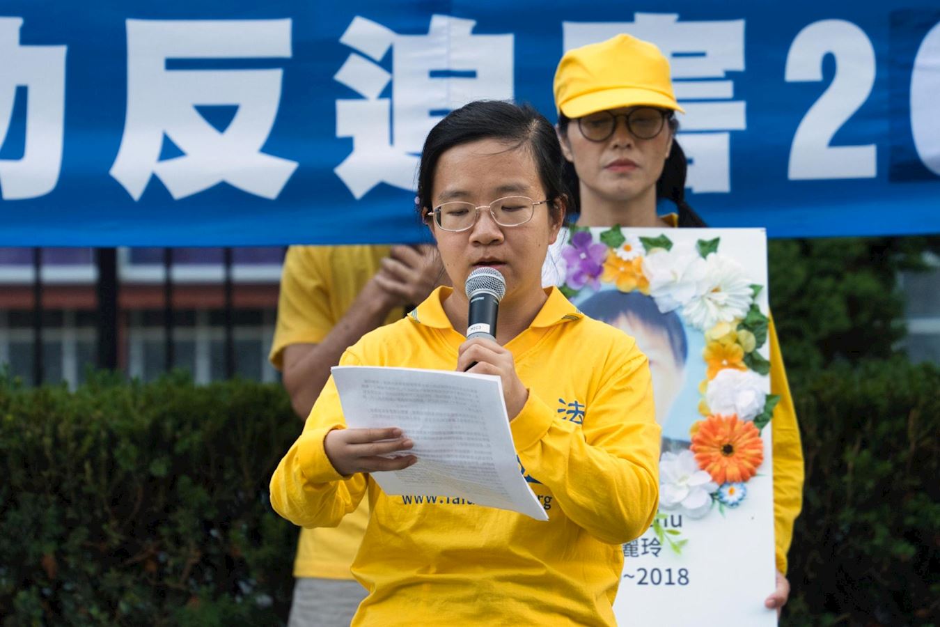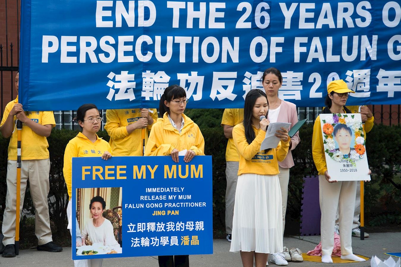 Falun Gong praktikantica Yang Man iz provincije Liaoning se obratila na konferenciji za štampu i opisala progon koji je njena majka, Pan Jing, pretrpjela u Kini. „Tokom godina, moju majku su hapsili najmanje sedam puta, dva puta slali u logore za prisilni rad i jednom je bila pritvorena u psihijatrijskoj bolnici.“