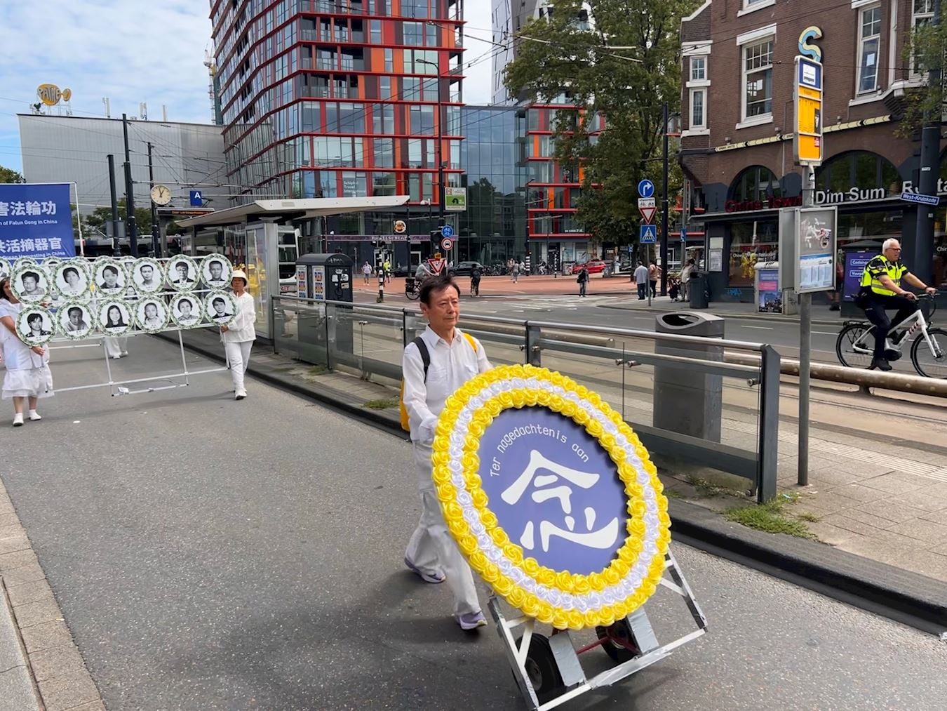 Tog dana održani su miting i dva marša. Krenuvši sa trga Šauburgplajn, u srcu Roterdama, predvođeni Tian Guo Marching Bandom, praktikanti su marširali pored Kineske četvrti, Van Oldenbarneveltplaca i Binenvegplajna pre nego što su se vratili na početnu tačku. Marš je privukao pažnju mnogih ljudi.