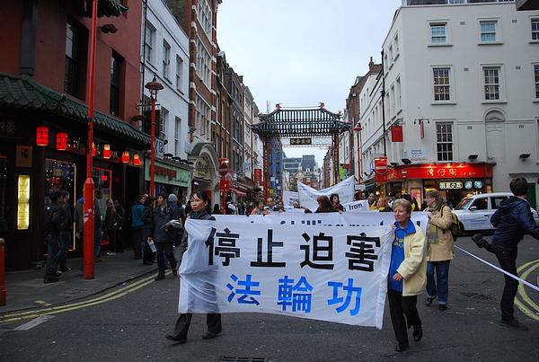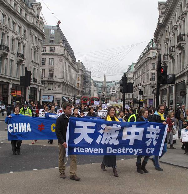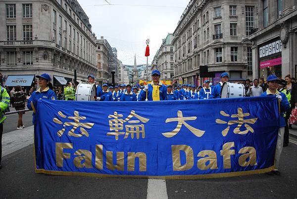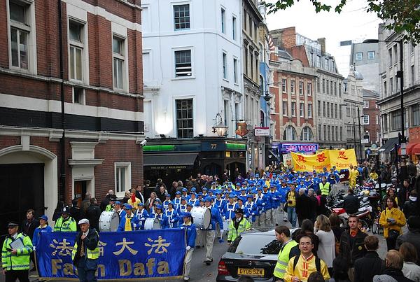 U procesiji su bila 4 dijela: Divine Land orkestar limene glazbe, Falun Dafa širom svijeta, miroljubivi otpor progonu i podrška Kinezima koji su istupili iz KPK. Mimohod je započeo ispred kineskog veleposlanstva, prošao kroz najprometnije ulice Londona i kineske četvrti te je, dva sata kasnije, završio na St. Martin's trgu.