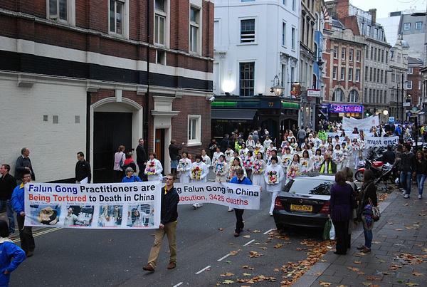 7000 Falun Gong praktikanata je, 5. studenog 2011., održalo veliki mimohod u Londonu, upoznavajući javnost s istinitim činjenicama o Falun Gongu.