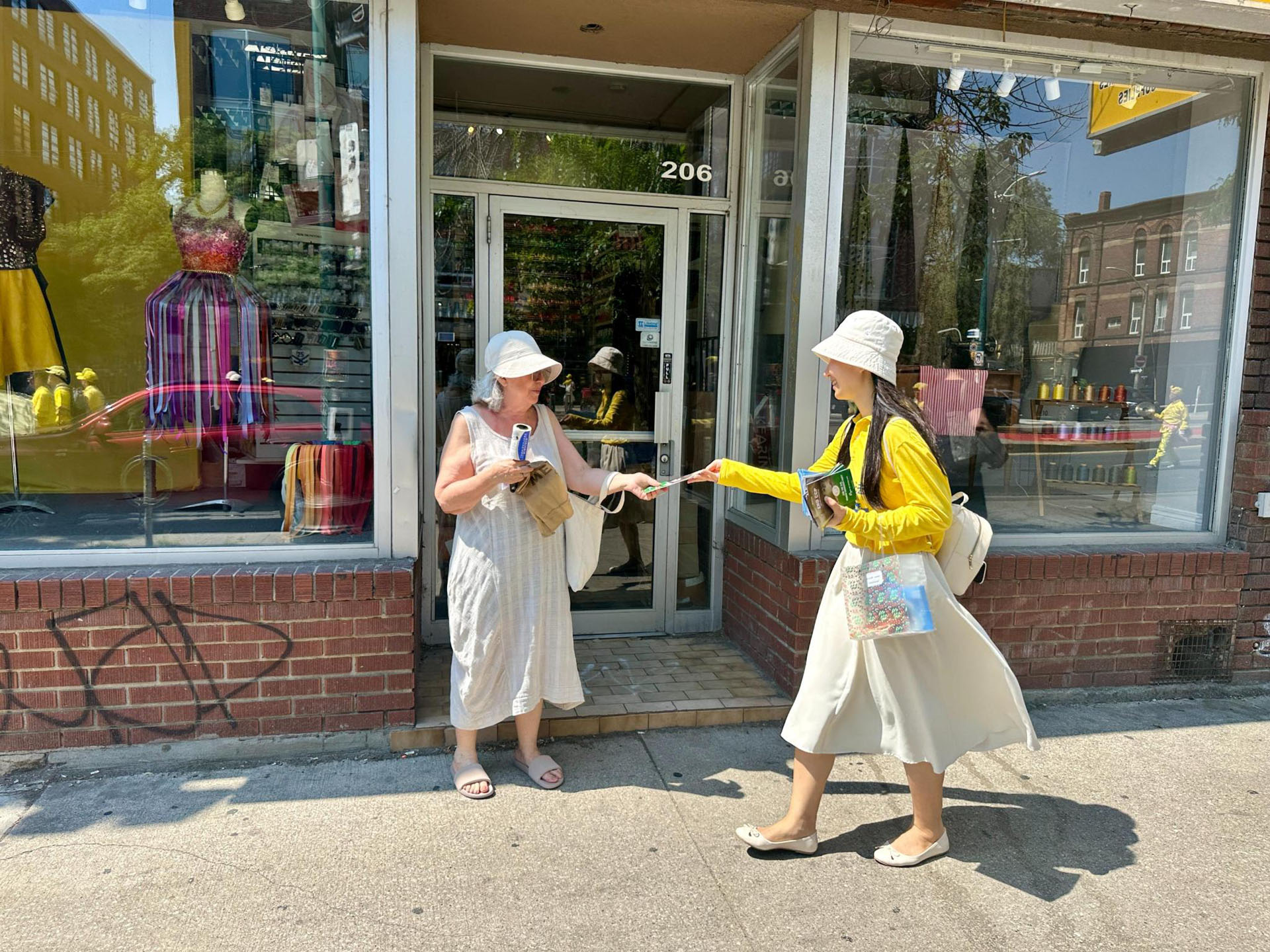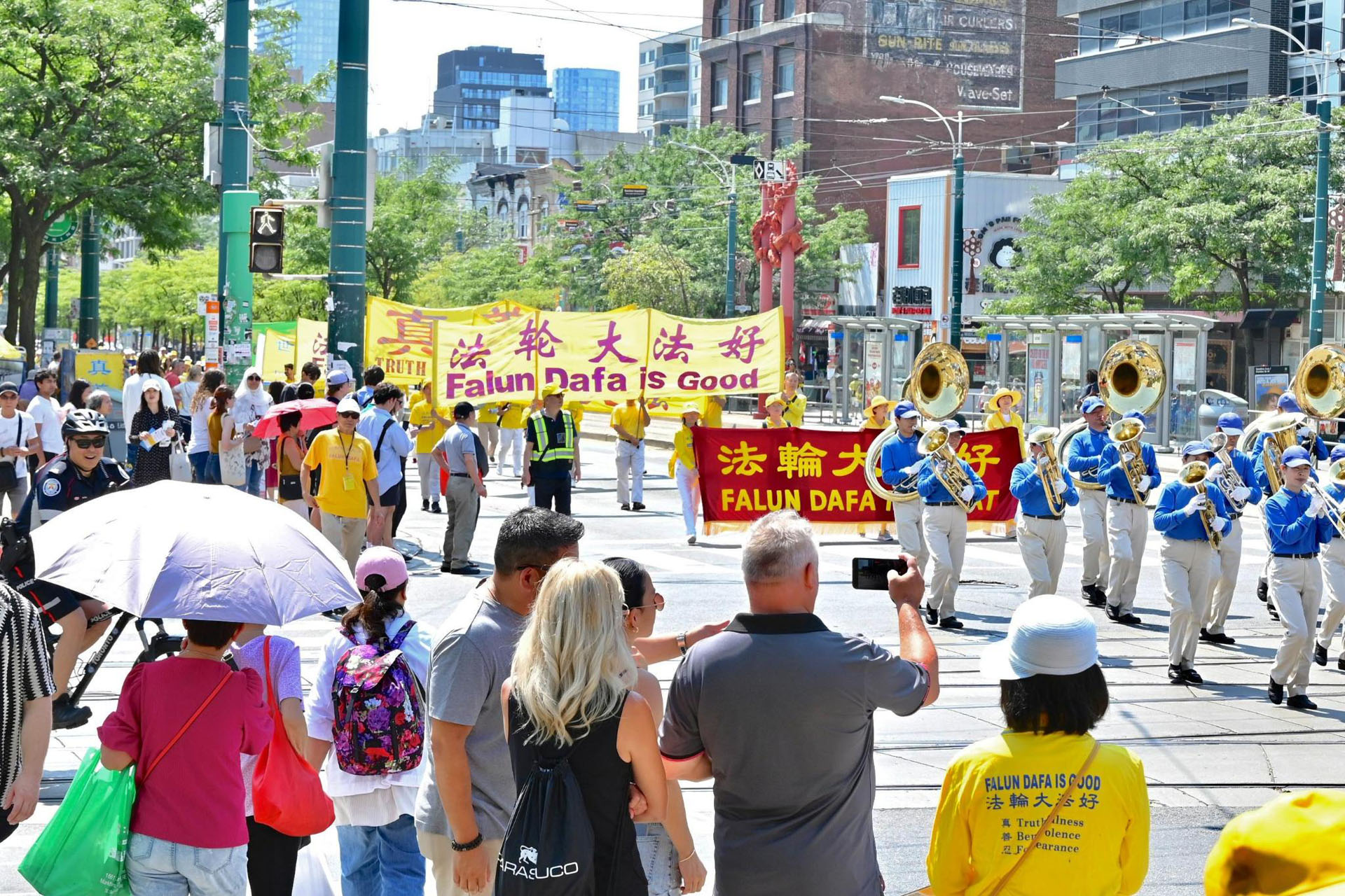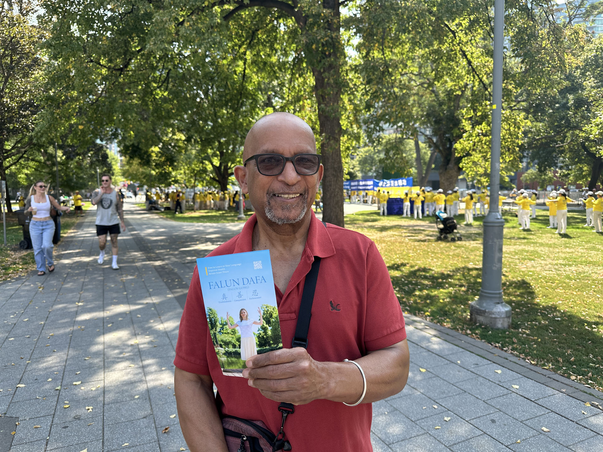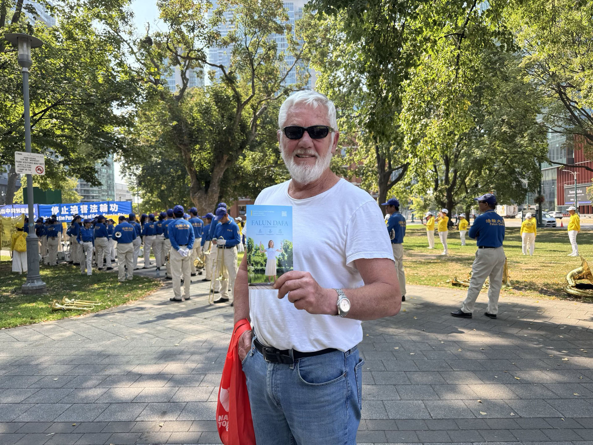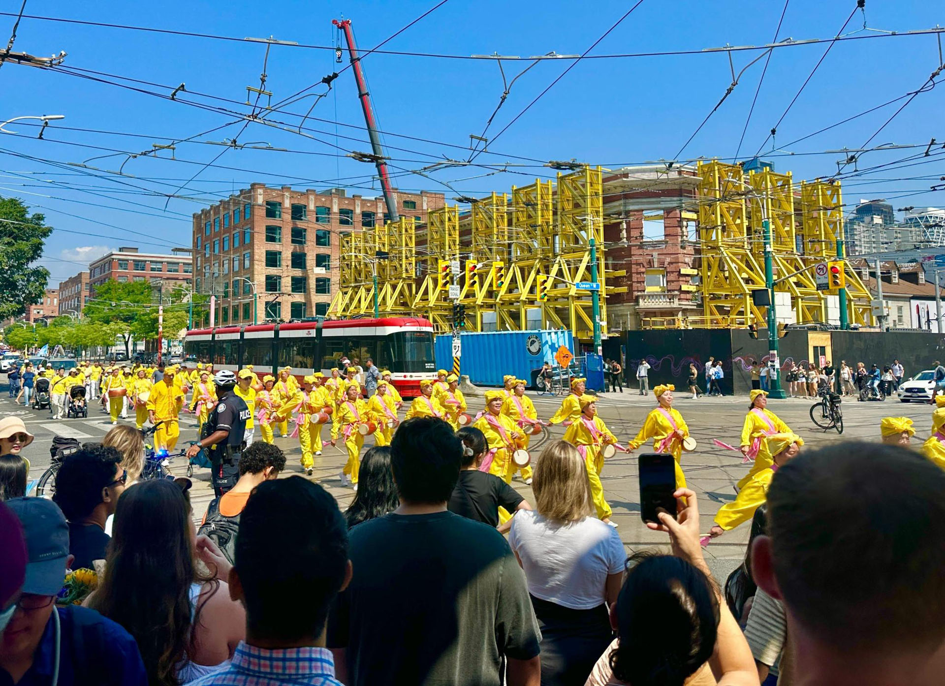 Praktikanti Falun Dafa u Torontu održali su skup u parku Clarence Square u blizini Kineske četvrti 16. kolovoza 2025. kako bi čestitali 450 milijuna Kineza koji su istupili iz Komunističke partije Kine (KPK) i njezinih omladinskih organizacija. Odali su počast svima koji su hrabro donijeli ovaj izbor i pozvali su sve sektore kanadskog društva da pomognu u zaustavljanju transnacionalne represije KPK nad praktikantima Falun Dafa koji žive u Kanadi. Ljudi iz svih sfera života govorili su na skupu, izražavajući svoju podršku i zahvalnost za mirni prosvjed praktikanata Falun Dafa, posebno u pomaganju javnosti da shvati pravu prirodu KPK.