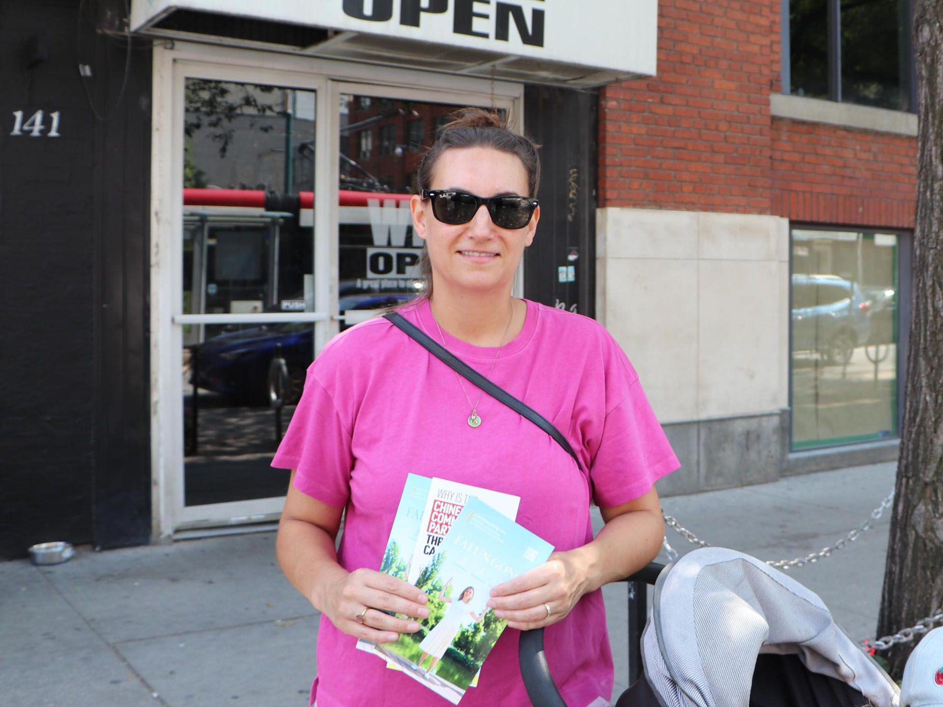 Emily je pravna asistentica. Pokazujući na letak, rekla je: „Jednom sam vidjela neke Falun Dafa praktikante kako meditiraju u parku. Mislim da su principi Istinitosti, Dobrodušnosti i Tolerancije vrlo važni ljudima.“