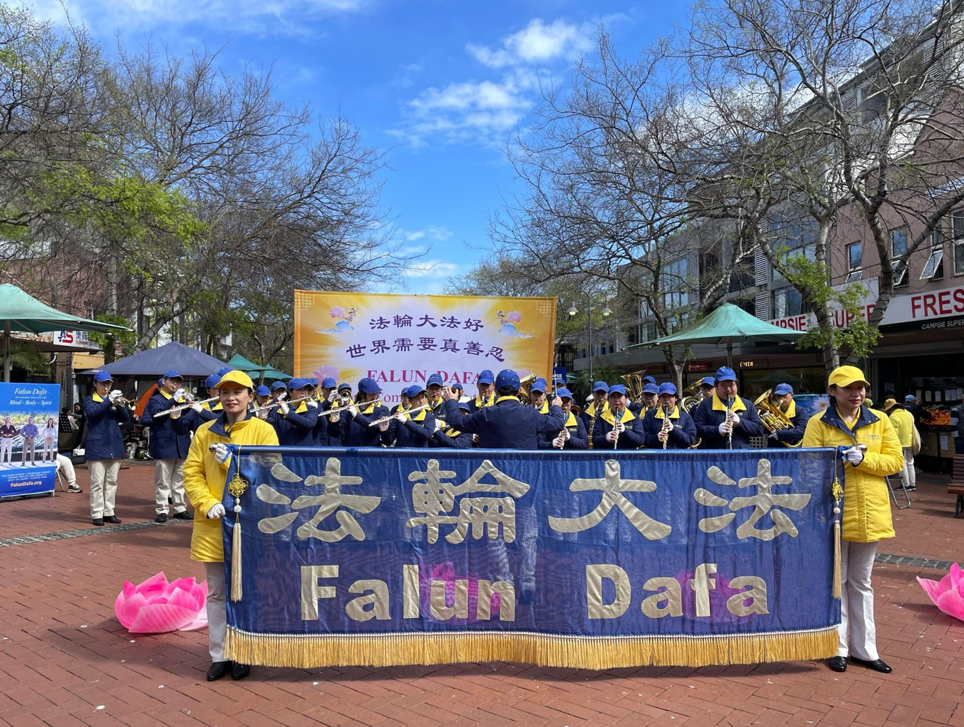 Ksu, predstavnik praktikanata lokalnog Falun Dafa udruženja, rekao je u svom govoru: „Zahvaljujemo gradu Kanterberi Bankstaunu na njihovoj stalnoj ljubaznoj pomoći tokom godina u pomaganju našoj zajednici u Kampsiju. Praktikanti Falun Dafe u Kampsiju svakog jutra ovde praktikuju meditaciju i vežbe, nudeći besplatne časove javnosti. Oni se takođe pridružuju sajmovima zajednice, paradama i drugim događajima koje organizuje grad Kanterberi Bankstaun. Kao što vidite danas, marširajući orkestar je sastavljen od praktikanata, od kojih su mnogi bili proganjani ili su njihovi članovi porodice proganjani u Kini zbog svojih uverenja.