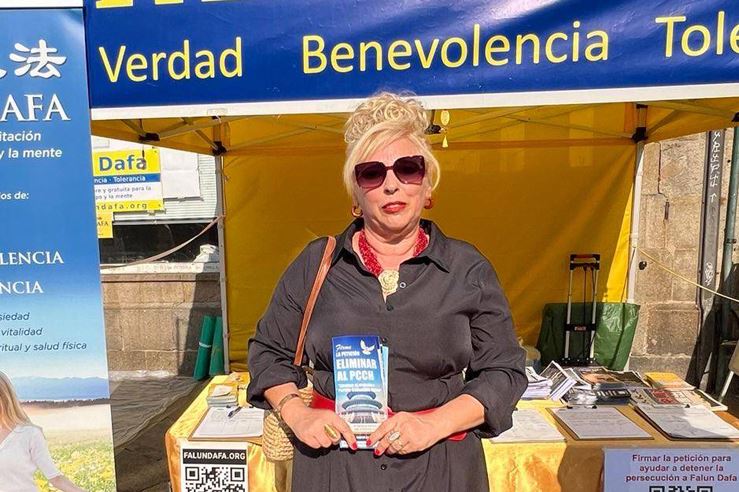 Kristina, koja živi u Galiciji, rekla je praktikantu da je veoma zainteresovana za čigong i Tai Či, „Ali devedesetih godina niko u Španiji nije podučavao čigong.“ Potvrdila je sa praktikantom da je Falun Gong isto što i Falun Dafa. Tokom putovanja u Kinu pre osam godina, čula je o Falun Gongu od jednog praktikanta, da režim KPK ne dozvoljava postojanje duhovne vere. Stoga, kada je videla slike na izložbenim panoima koje prikazuju praktikante koji su brutalno proganjani od strane KPK, odmah je potpisala peticiju da podrži njihove napore da razotkriju progon.