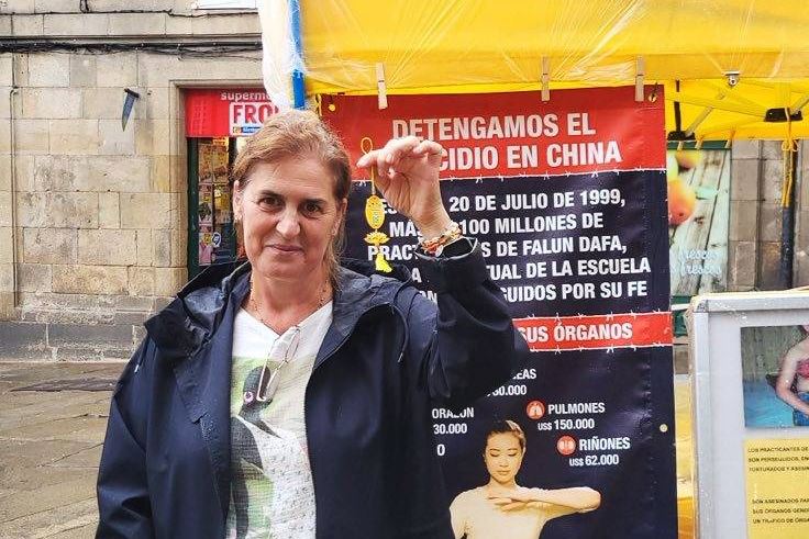 Meštanka Begoña pažljivo je čitala izložbene panoe. Pitala je da li može da fotografiše kako bi ih podelila sa svojom porodicom i prijateljima, i gde oni mogu potpisati peticiju. Praktikant joj je odgovorio na pitanja. Govoreći o progonu, posebno o neviđenom zlu vađenja organa živih praktikanata, više puta je rekla: „Ovo je previše užasno!“ Rekla je da je uvek bila zabrinuta za pitanja ljudskih prava i da je znala za neka kršenja ljudskih prava u Kini, ali nije znala da je progon Falun Dafe tako brutalan.