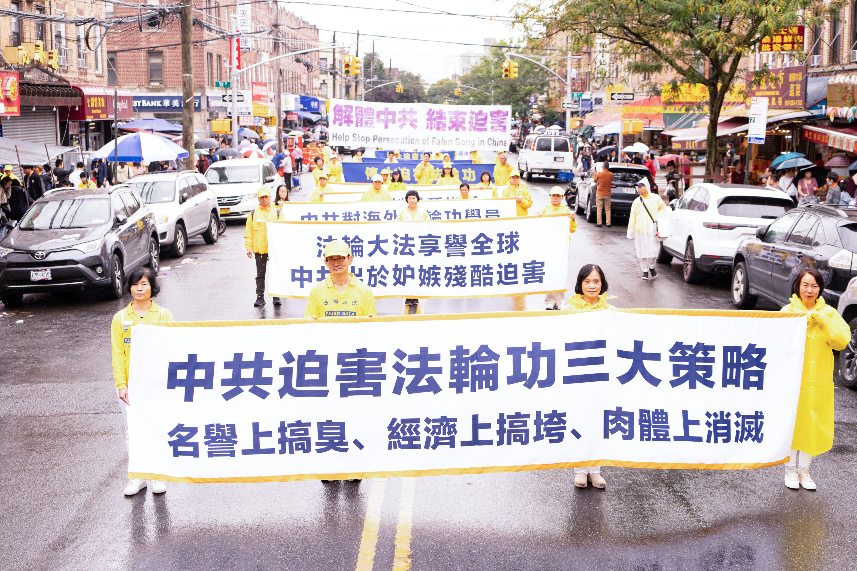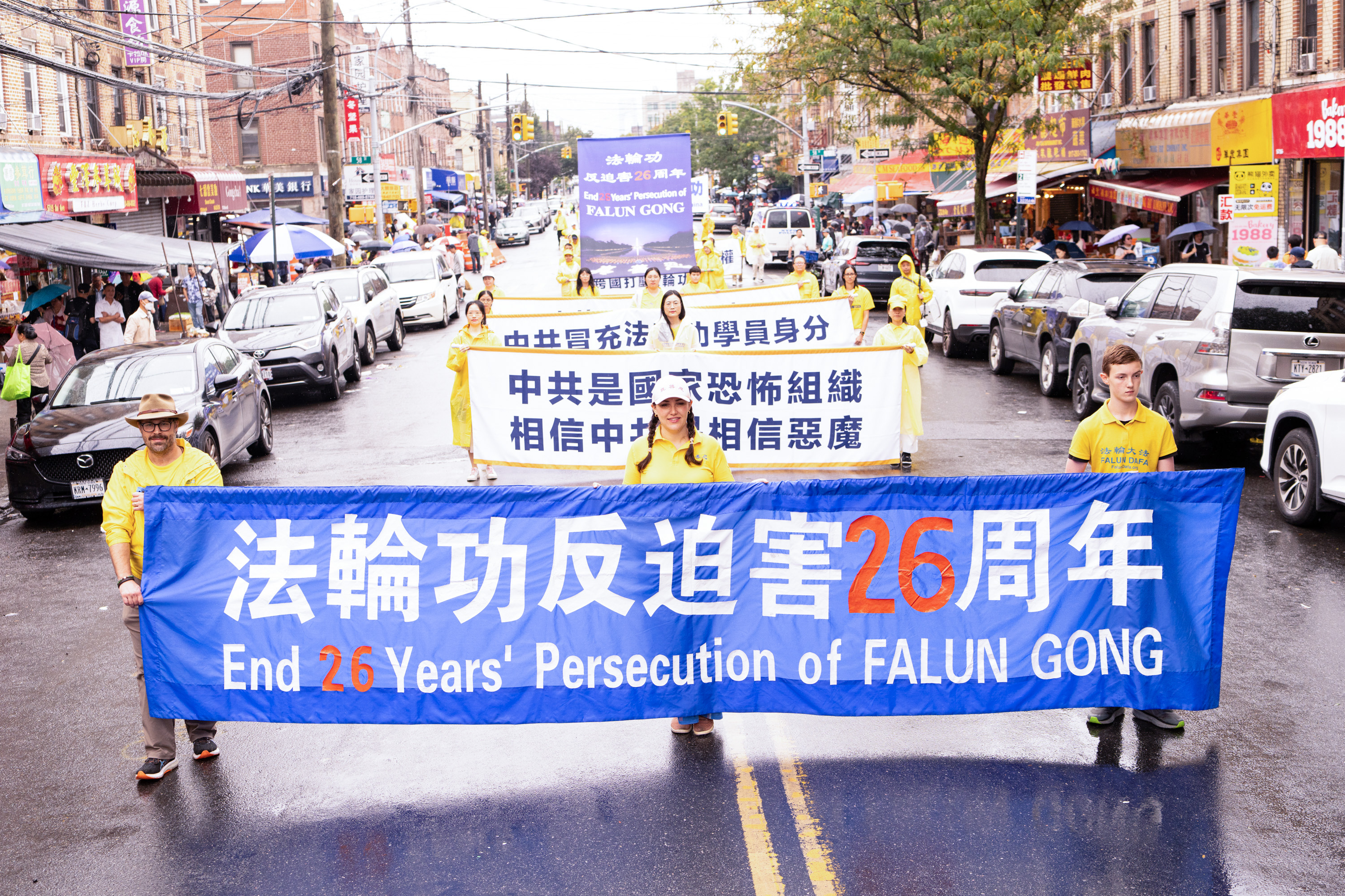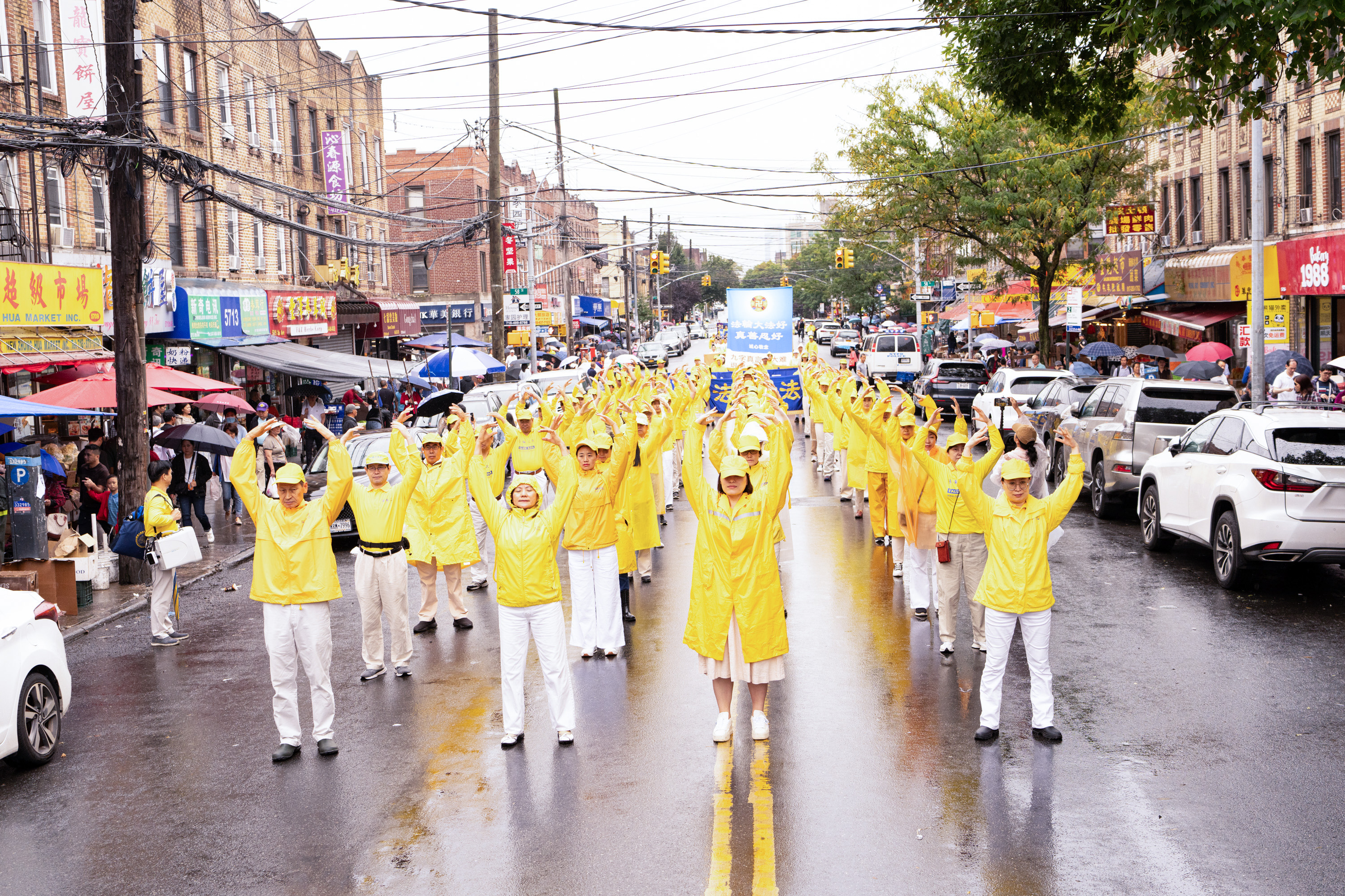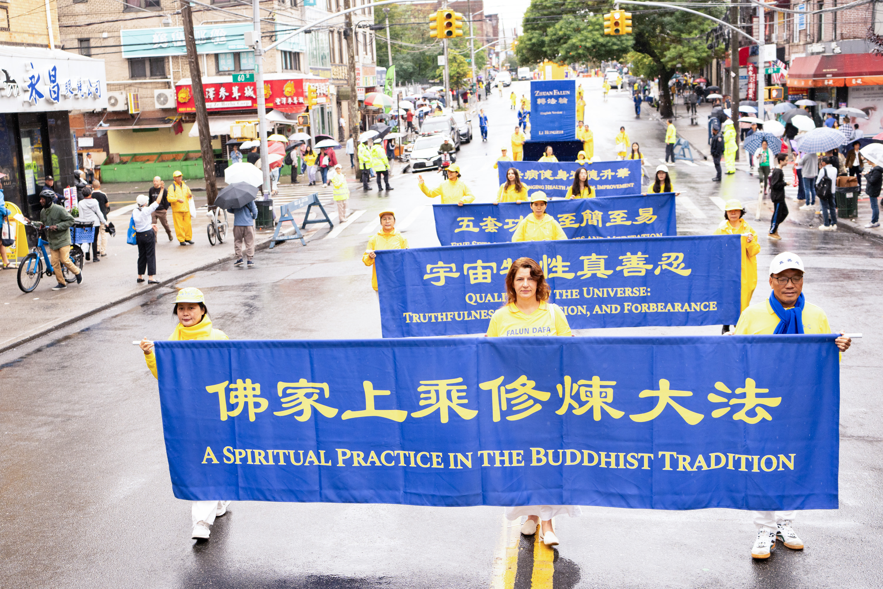 Jedna od najvećih kineskih zajednica u New Yorku nalazi se na Osmoj aveniji. Parada je imala tri dijela i 26 grupa: od 66. ulice do 42. ulice. U znak podrške praktikantima Falun Gonga, neki Kinezi su čak napravili ručno izrađene transparente i pridružili se paradi, dok su drugi prolaznici gledali i snimali videozapise.