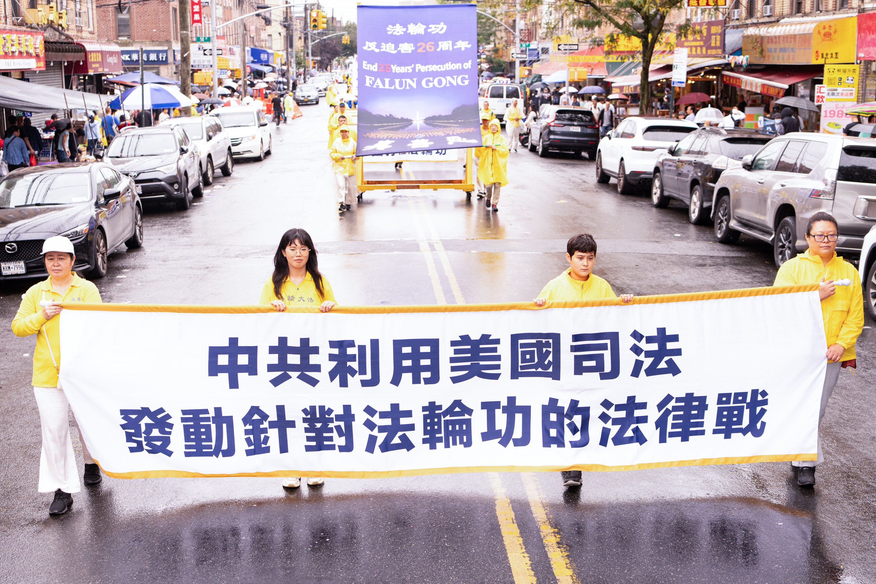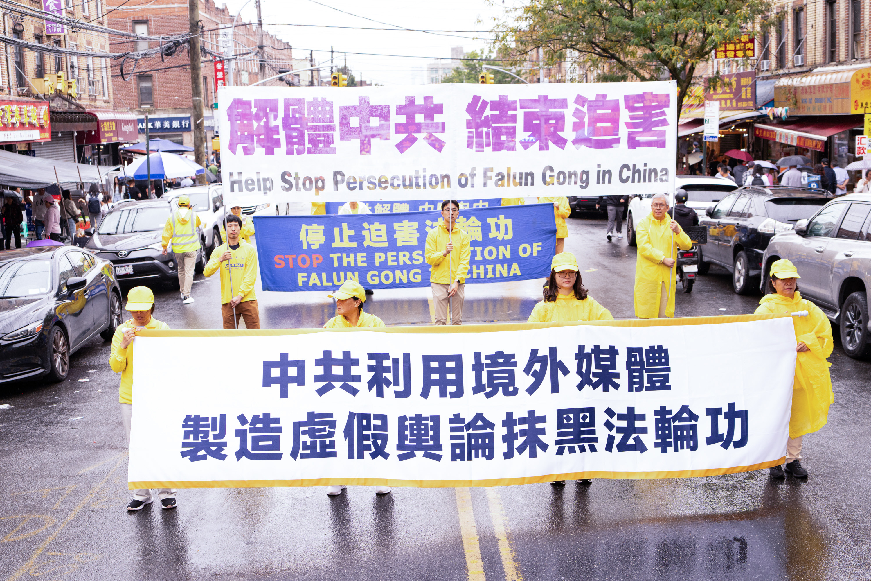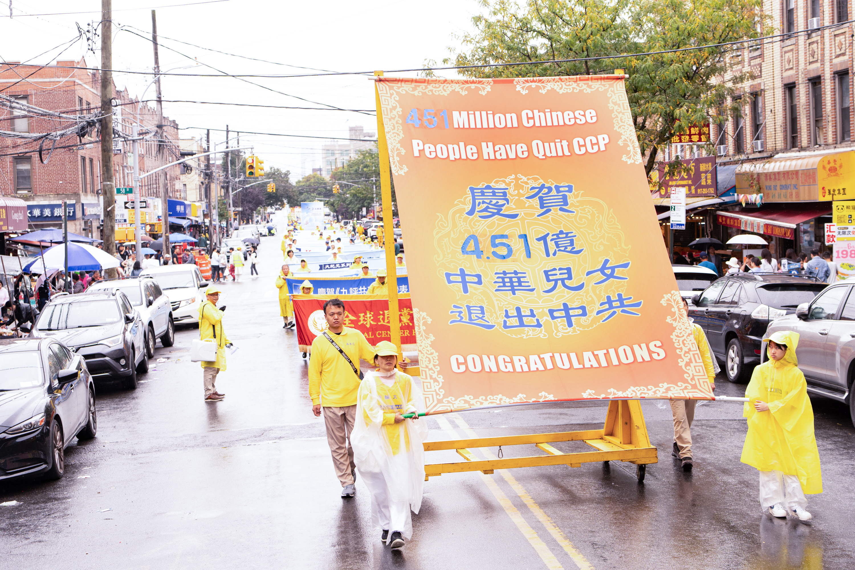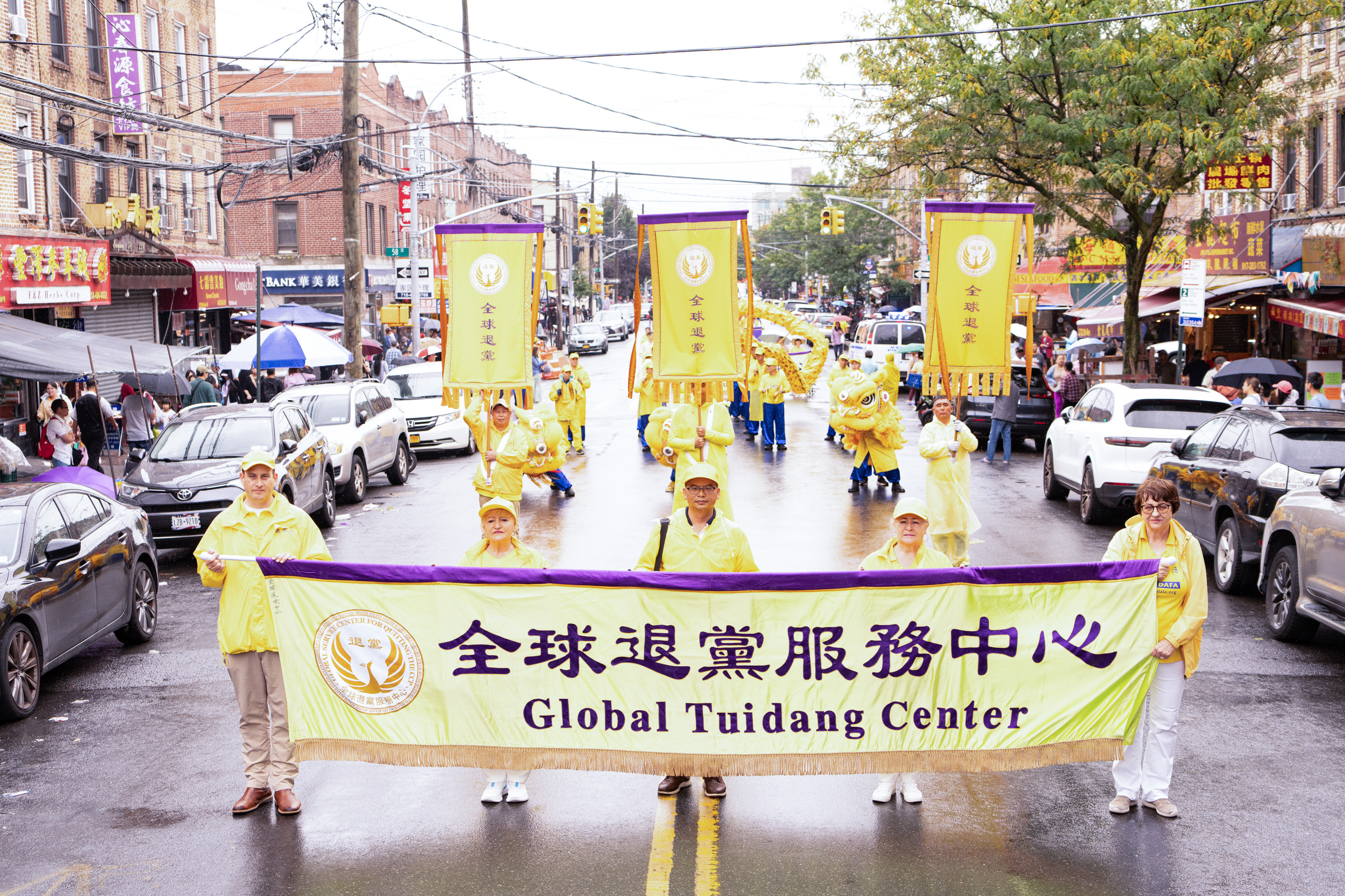 Jedna od najvećih kineskih zajednica u New Yorku nalazi se na Osmoj aveniji. Parada je imala tri dijela i 26 grupa: od 66. ulice do 42. ulice. U znak podrške praktikantima Falun Gonga, neki Kinezi su čak napravili ručno izrađene transparente i pridružili se paradi, dok su drugi prolaznici gledali i snimali videozapise.