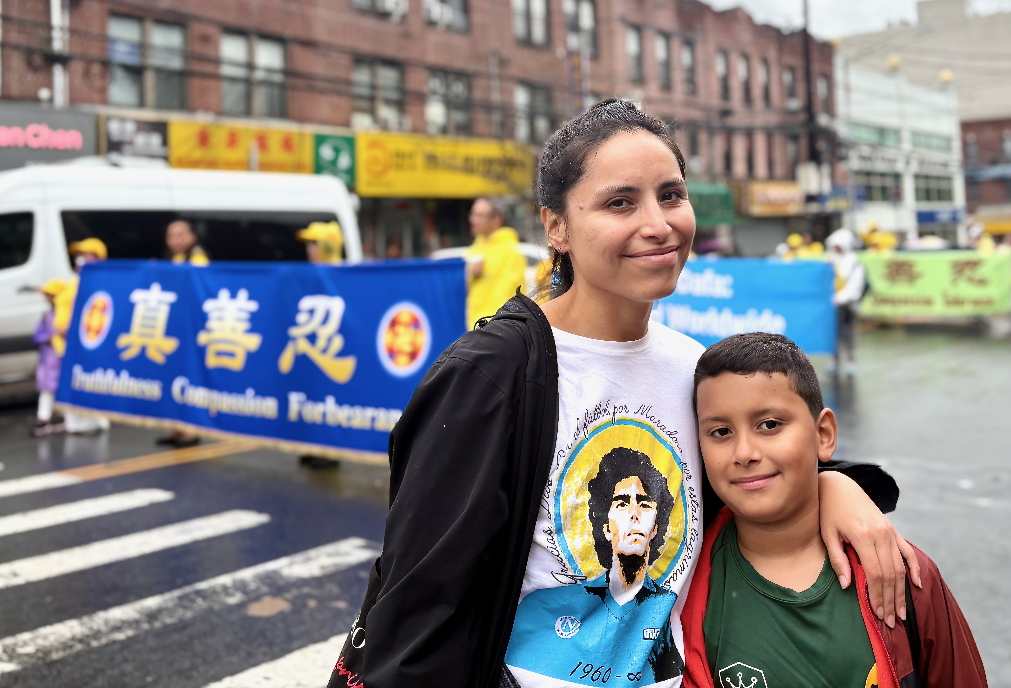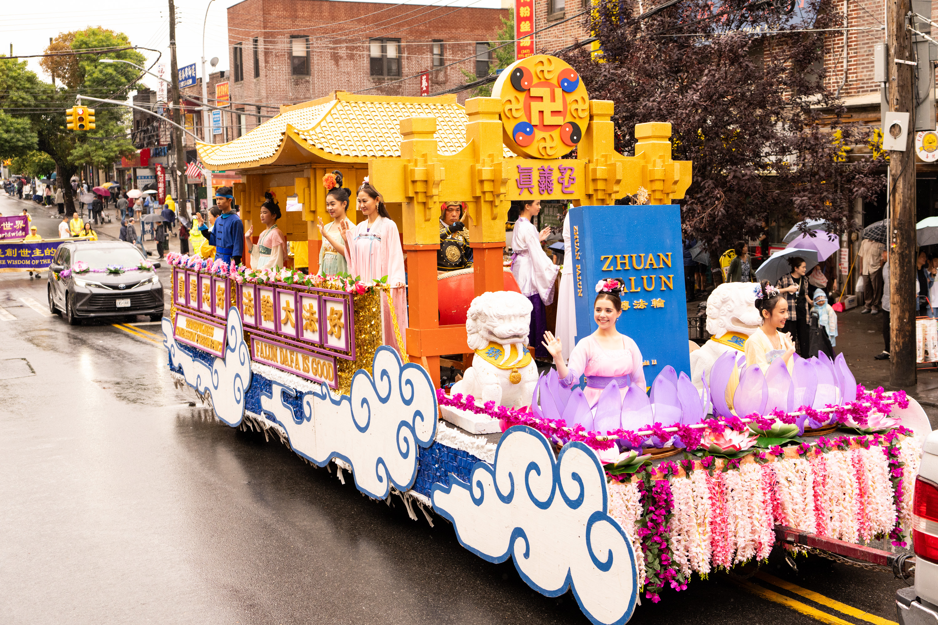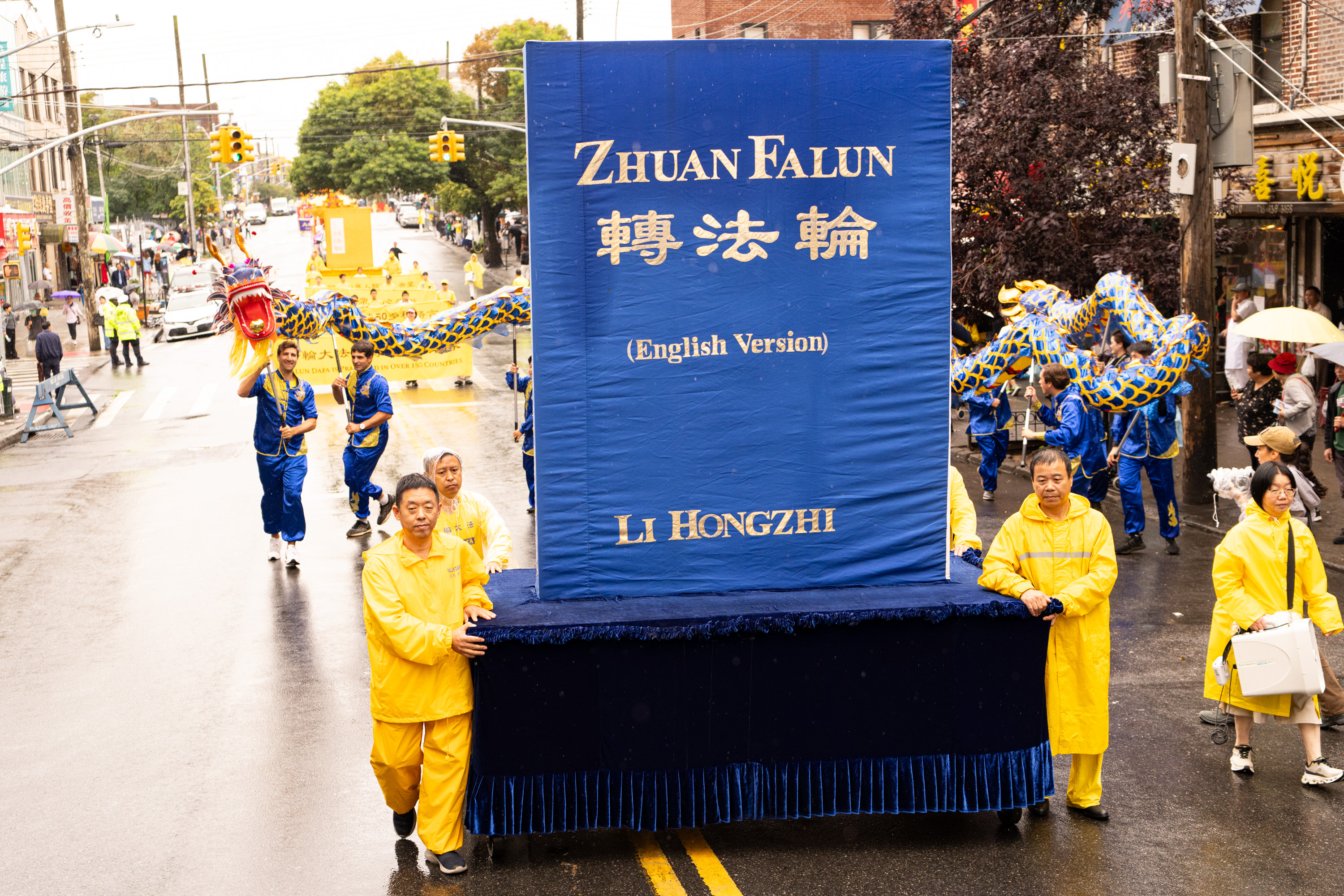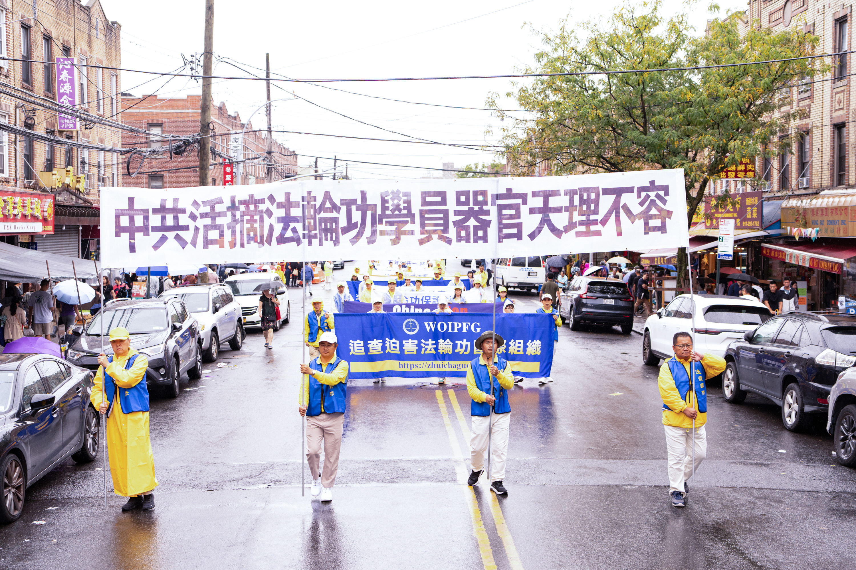 Jedna od najvećih kineskih zajednica u New Yorku nalazi se na Osmoj aveniji. Parada je imala tri dijela i 26 grupa: od 66. ulice do 42. ulice. U znak podrške praktikantima Falun Gonga, neki Kinezi su čak napravili ručno izrađene transparente i pridružili se paradi, dok su drugi prolaznici gledali i snimali videozapise.