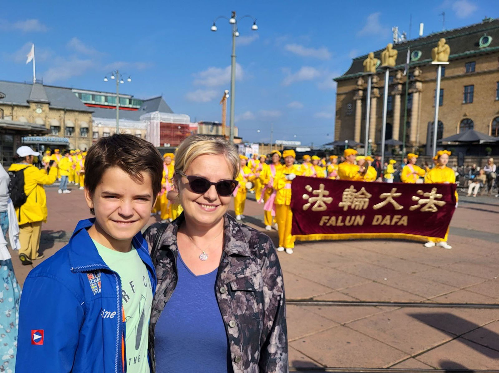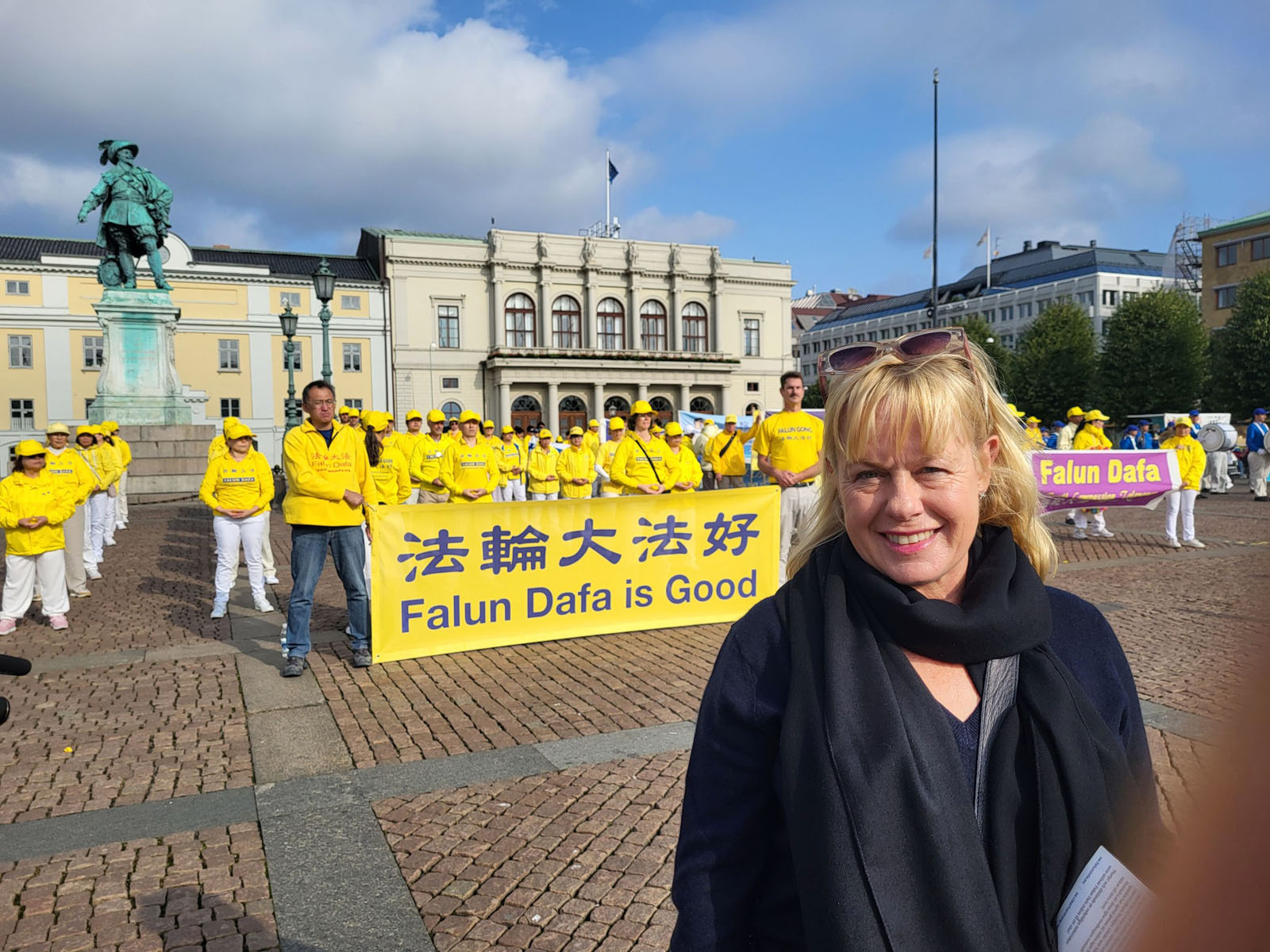 Vidjevši da praktikanti slave svoje uvjerenje na miran način i prenose dobre poruke Falun Dafa ljudima u Švedskoj uprkos progonu, gđa Huckridge je kazala: „Ovo je zaista nešto dobro za čovječanstvo.“