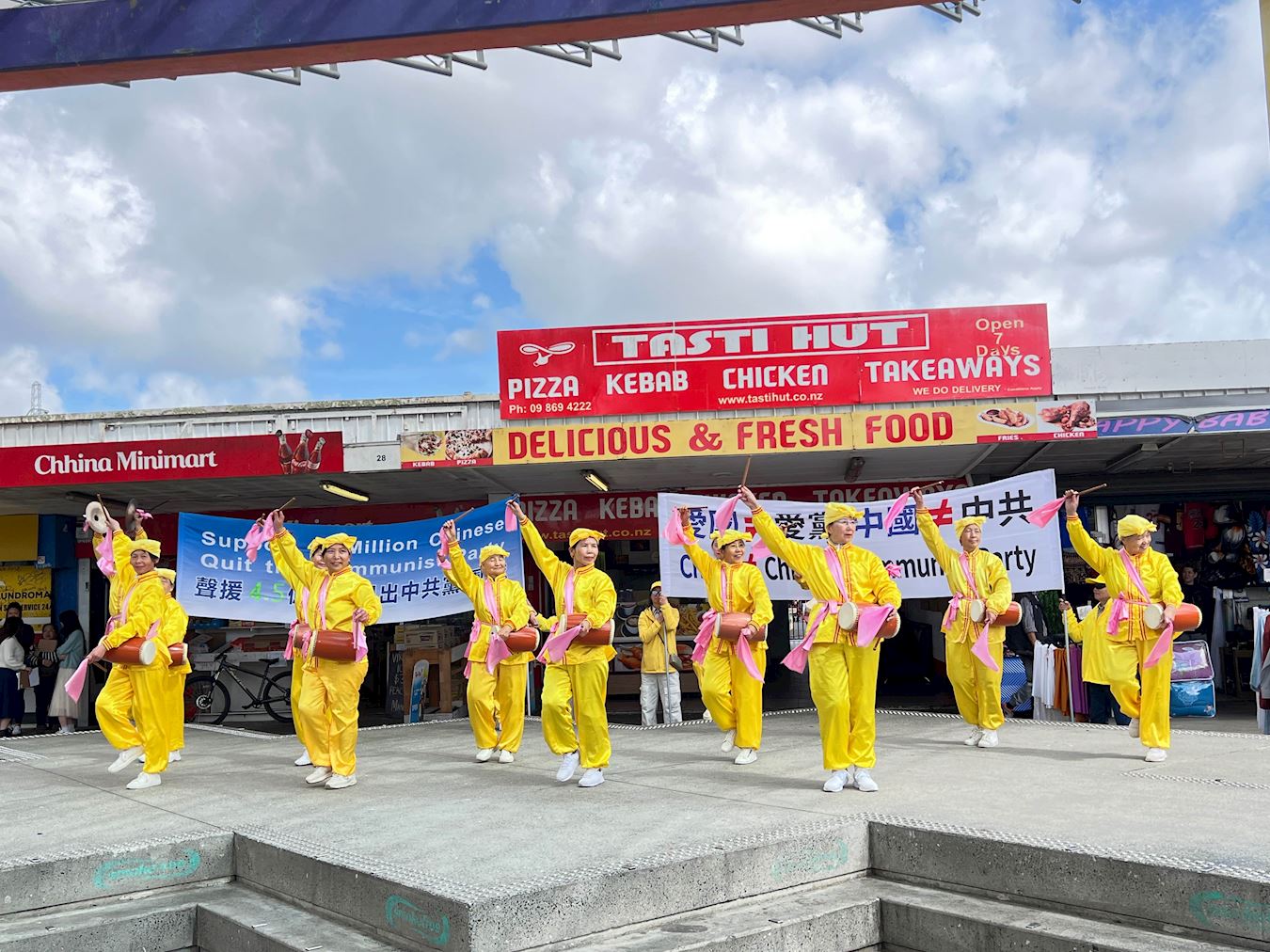 Praktikanti su 27. septembra 2025. godine održali manifestaciju na pijaci Otara u Aucklandu, na Novom Zelandu. Izvodili su Falun Dafa vježbe, te su održali nastupe dobošara i ples zmaja kako bi odali počast za više od 450 miliona Kineza koji su napustili organizacije Komunističke partije Kine (KPK). Mnogi ljudi su se složili s Falun Dafa principima Istinitosti-Dobrodušnosti-Tolerancije i pozvali su ljude da se suprotstave suzbijanju prakse od strane KPK.