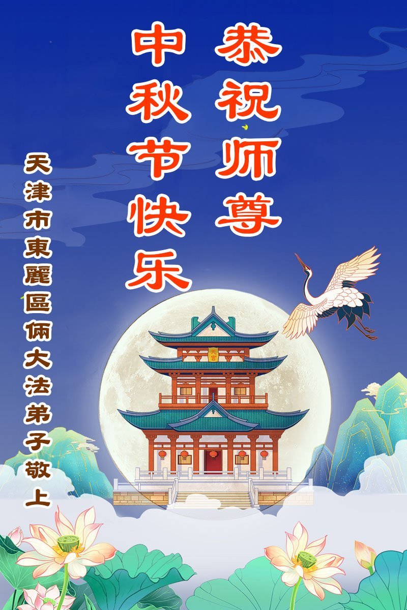 Falun Dafa praktikanti iz Tjenđina s poštovanjem žele Učitelju Li Hongdžiju srećan Praznik sredine jeseni (18 čestitki)