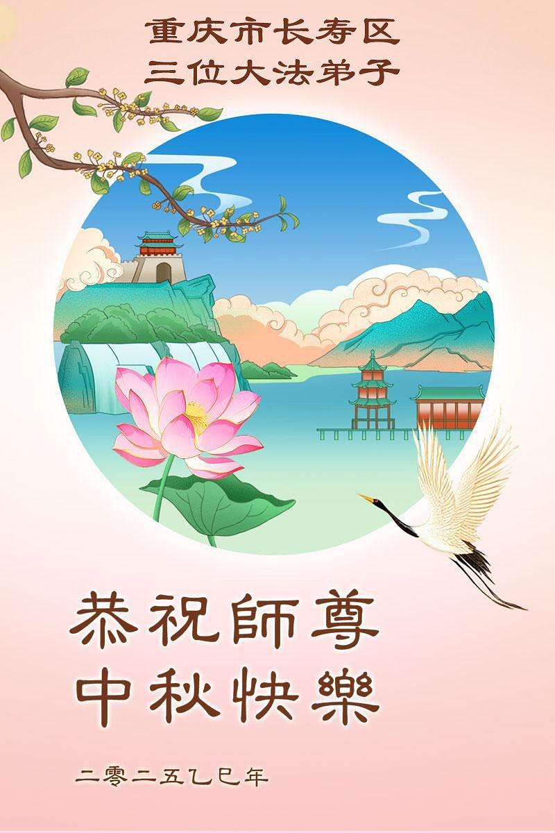 Falun Dafa praktikanti iz Čongkinga s poštovanjem žele Učitelju Li Hongdžiju srećan Praznik sredine jeseni (23 čestitke)