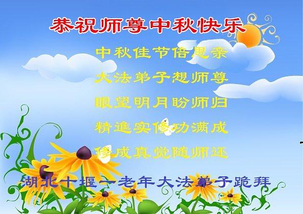 Falun Dafa praktikanti iz provincije Hubej s poštovanjem žele Učitelju Li Hongdžiju srećan Praznik sredine jeseni (18 čestitki)