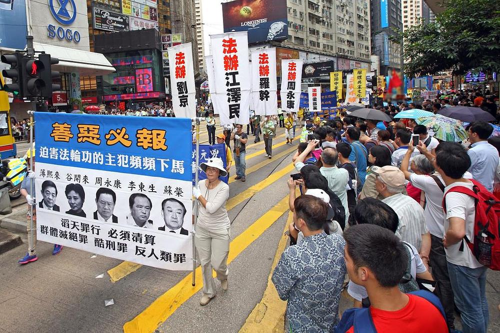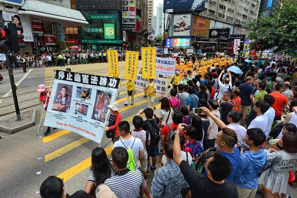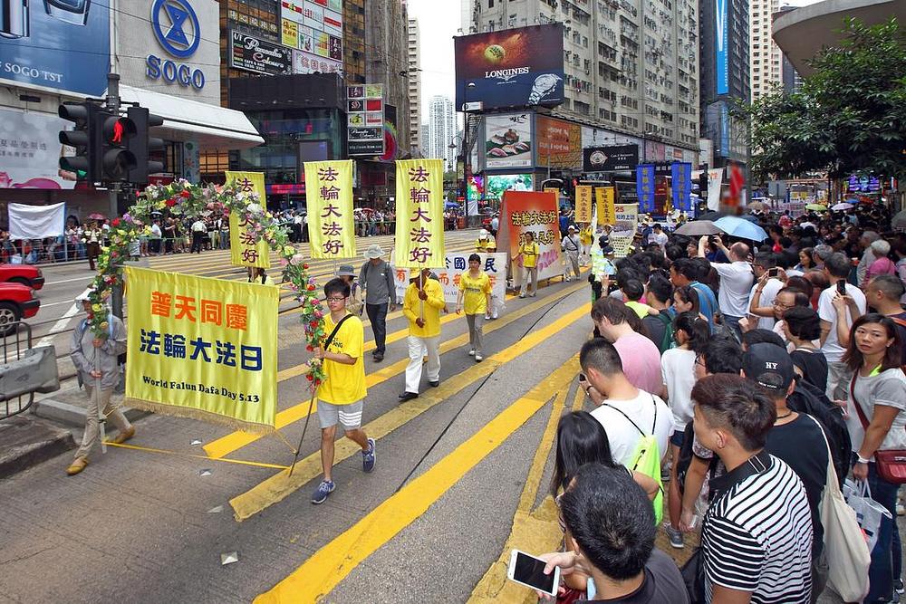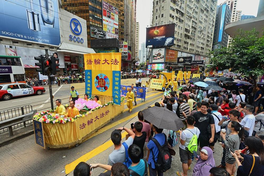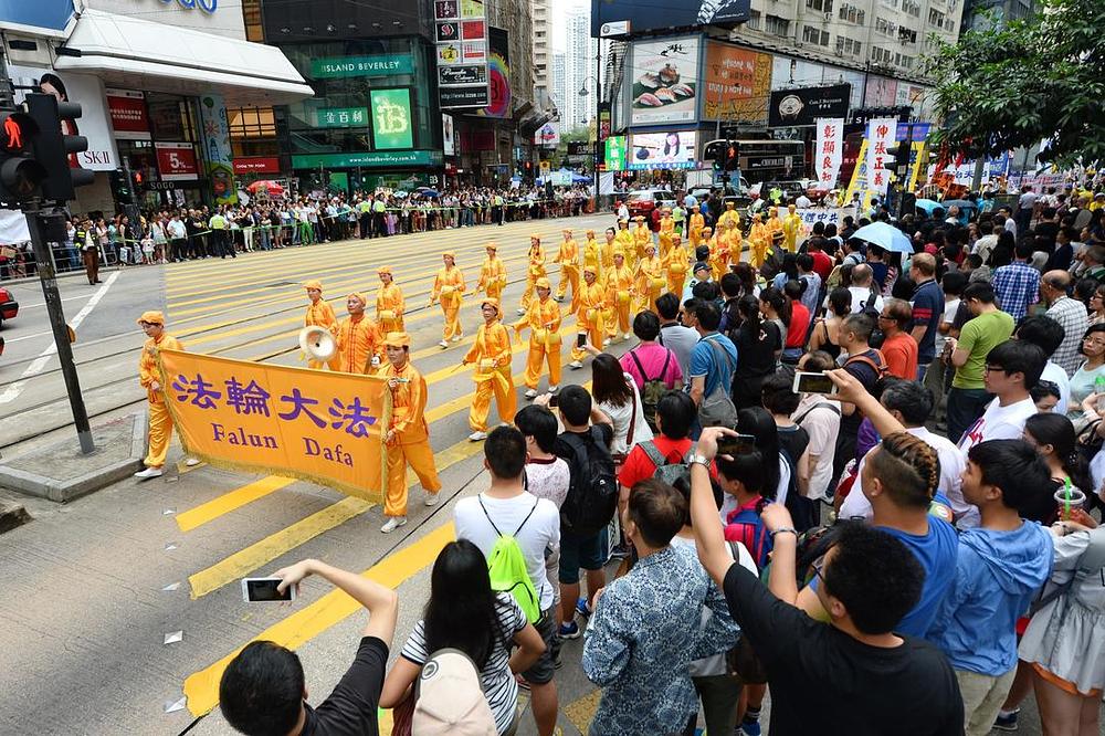 Predvođeni Divine Land Marching Band-om, Falun Gong povorka se protezala od Viktorija Parka, išla kroz Zaljev Caseway i Centar, pored gradskog distrikta sve do memorijalnog parka doktora Sun Yat Sena. Popodnevna je parada trajala dva časa.