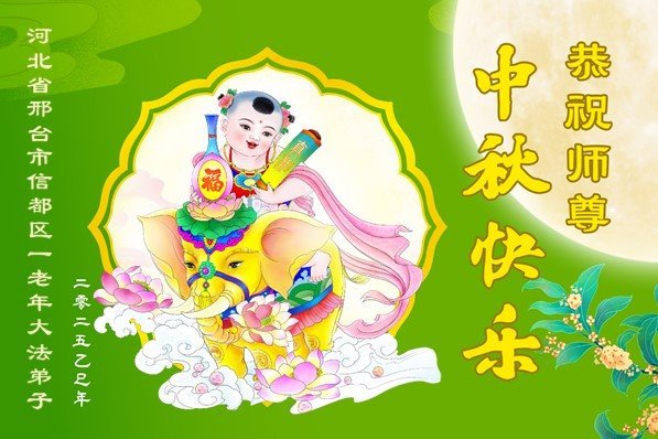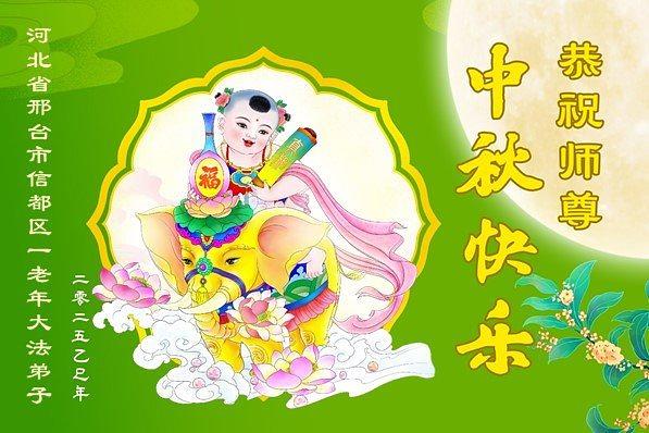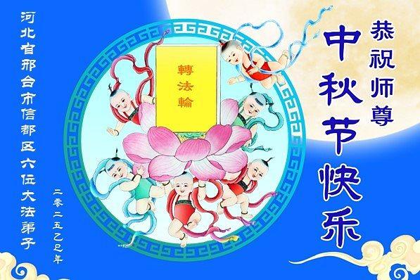 Falun Dafa praktikanti iz provincije Hebej s poštovanjem žele Učitelju Li Hongdžiju srećan Praznik sredine jeseni (19 čestitki)