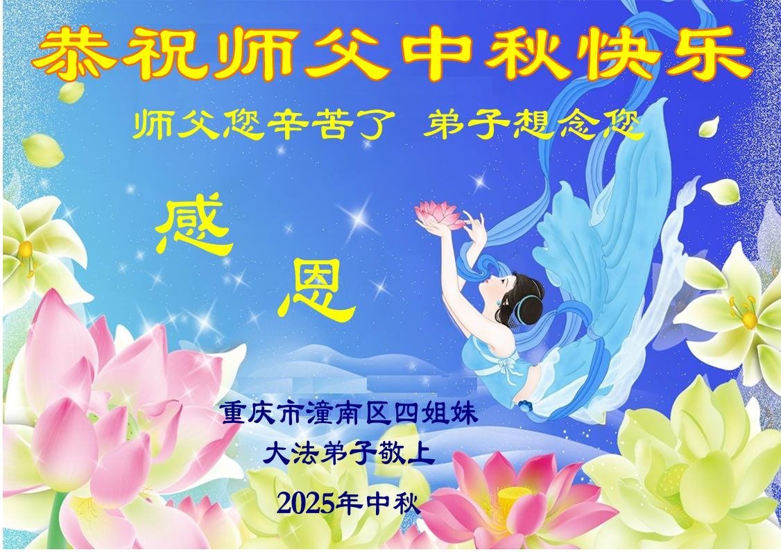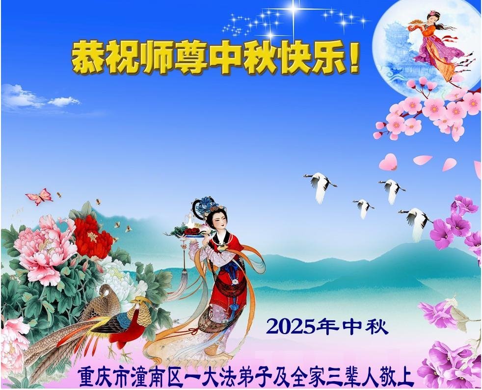 Falun Dafa praktikanti iz Čongkinga s poštovanjem žele Učitelju Li Hongdžiju srećan Praznik sredine jeseni (18 čestitki)