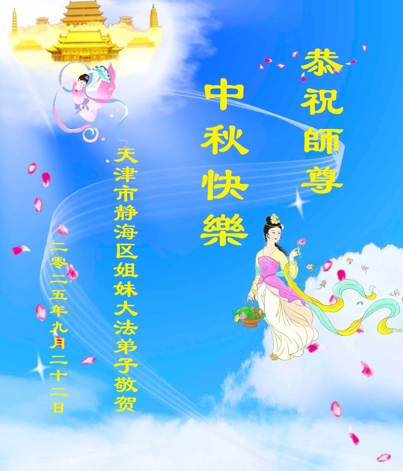 Falun Dafa praktikanti iz Tjenđina s poštovanjem žele Učitelju Li Hongdžiju srećan Praznik sredine jeseni (18 čestitki)