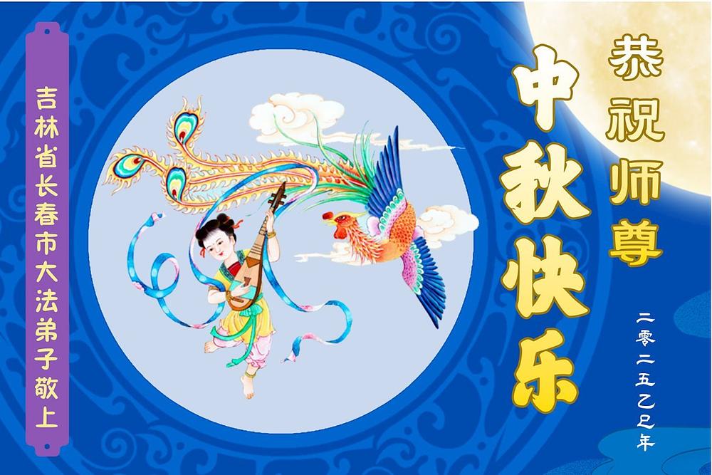 Falun Dafa praktikanti iz grada Čangčuna s poštovanjem žele Učitelju Li Hongdžiju srećan Praznik sredine jeseni (24 čestitke)