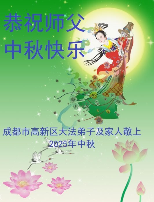 Falun Dafa praktikanti iz grada Čengdua s poštovanjem žele Učitelju Li Hongdžiju srećan Praznik sredine jeseni (18 čestitki)
