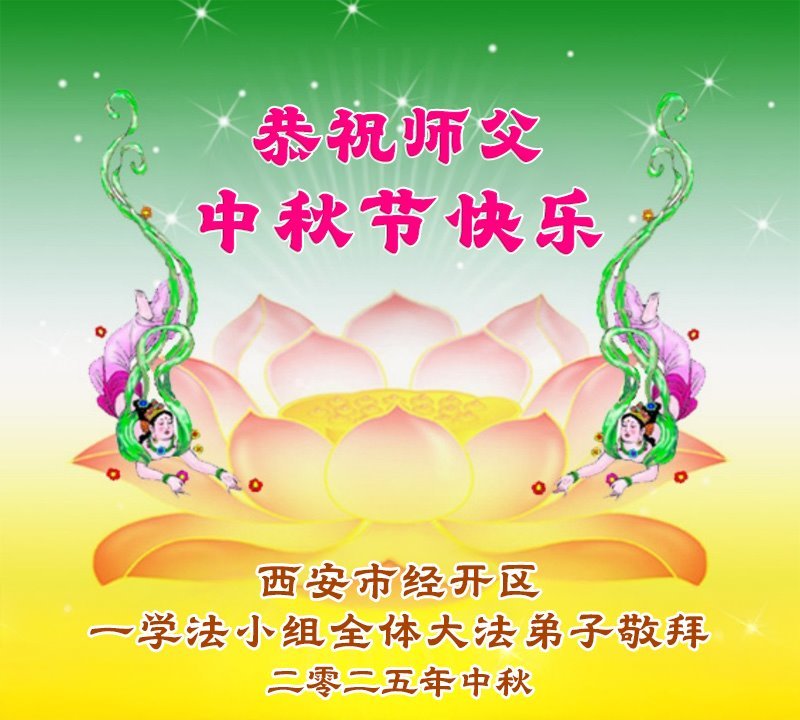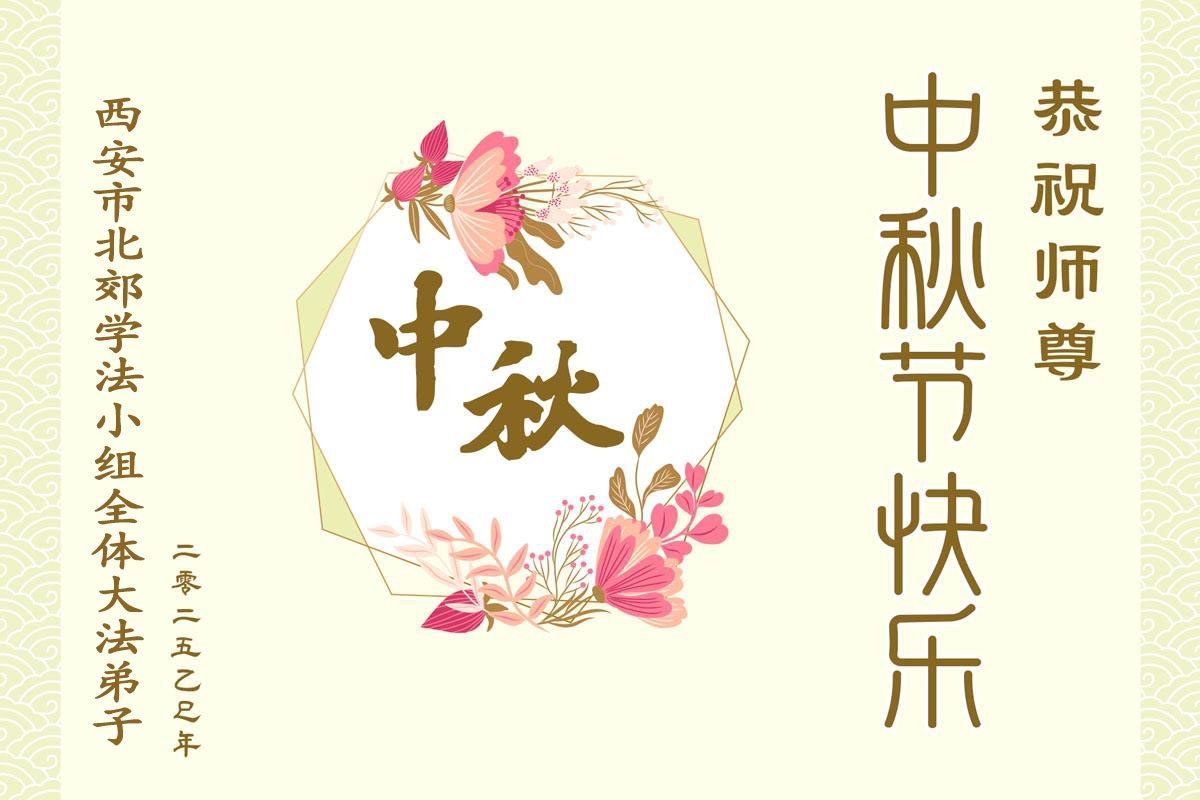 Falun Dafa praktikanti iz grada Si'ana s poštovanjem žele učitelju Li Hongdžiju srećan Praznik sredine jeseni (19 čestitki)