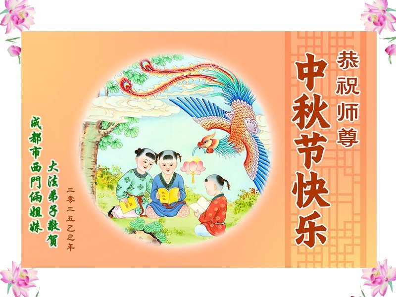 Falun Dafa praktičari iz grada Čengdua s poštovanjem žele Učitelju Li Hongdžiju srećan Praznik sredine jeseni (19 čestitki)