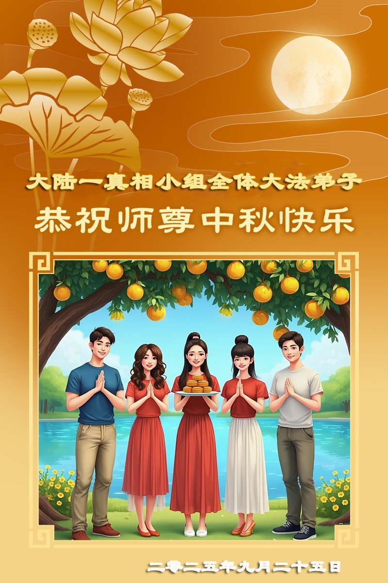 Povodom Praznika sredine jeseni (6. listopada 2025.), ovi praktikanti su poslali svoje najljepše želje Učitelju Li Hongzhiju, osnivaču Falun Dafa, kako bi mu zaželjeli sretan praznik i zahvalili mu na vođenju u njihovoj osobnoj kultivaciji i ustrajnim naporima za podizanje svijesti o progonu.