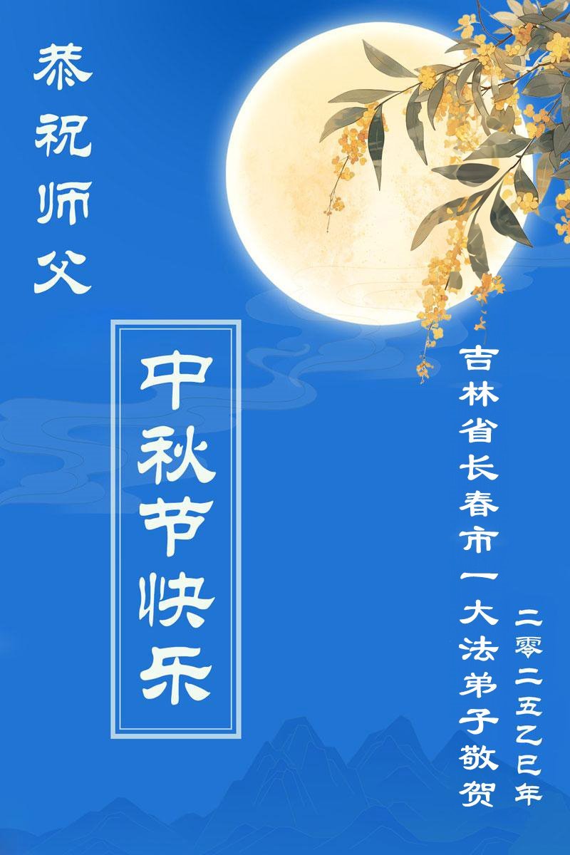 Falun Dafa praktikanti iz grada Čangčuna s poštovanjem žele Učitelju Li Hongdžiju srećan Praznik sredine jeseni (21 čestitka)