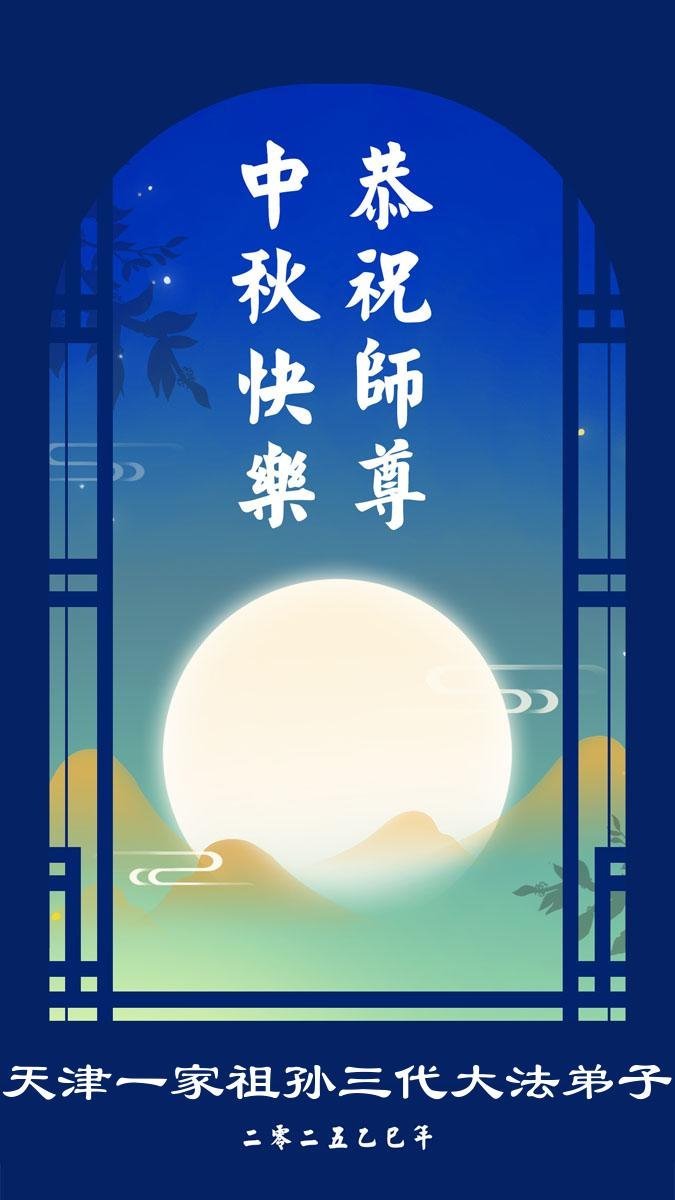 Falun Dafa praktikant iz Tjenđina s poštovanjem žele Učitelju Li Hongdžiju srećan Praznik sredine jeseni (19 čestitki)