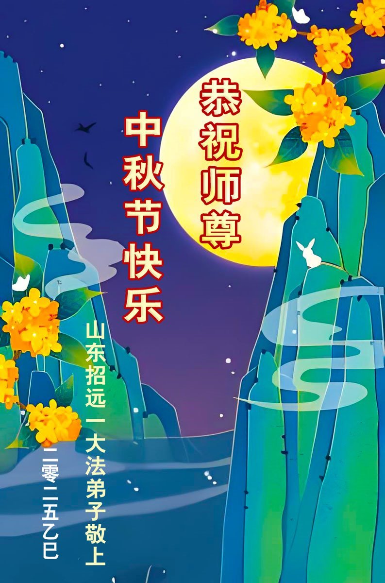 Falun Dafa praktikanti iz provincije Šandong s poštovanjem žele Učitelju Li Hongdžiju srećan Praznik sredine jeseni (20 čestitki)