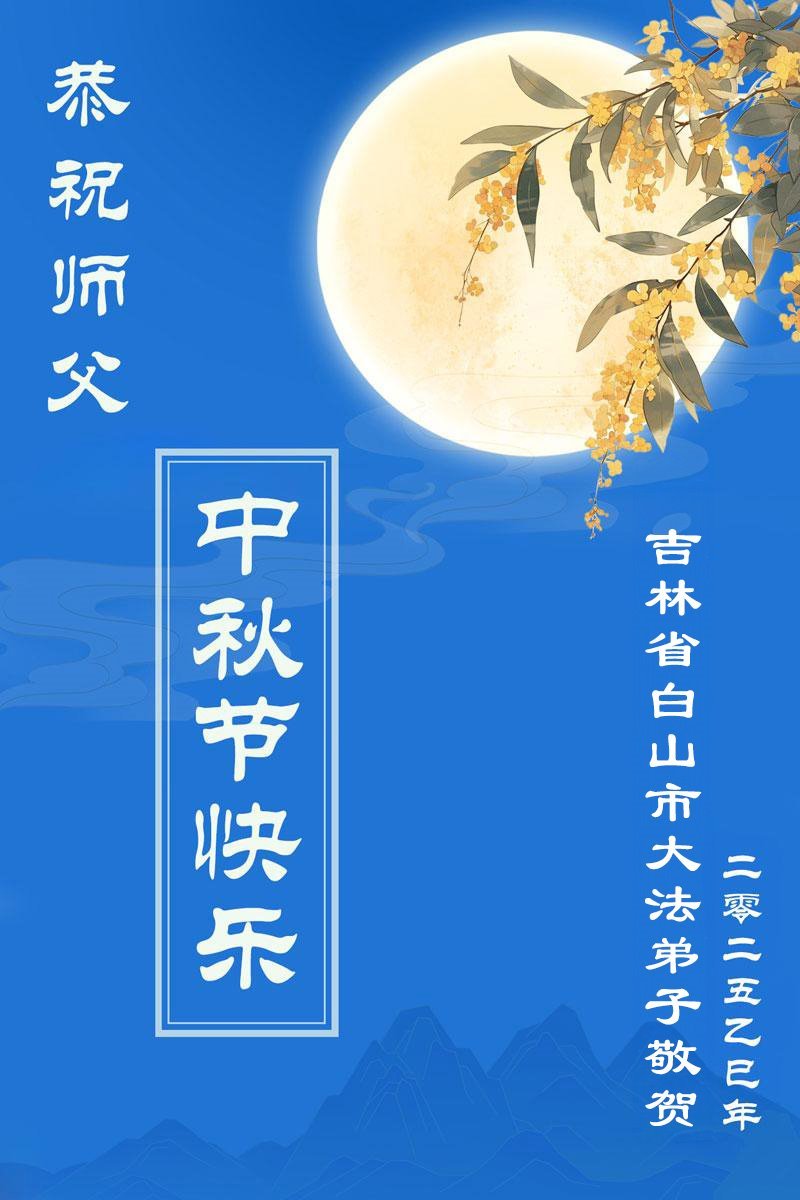 Praktikanti Falun Dafe u provinciji Đilin s poštovanjem žele Učitelju Li Hongdžiju srećan Praznik sredine jeseni (20 čestitki)