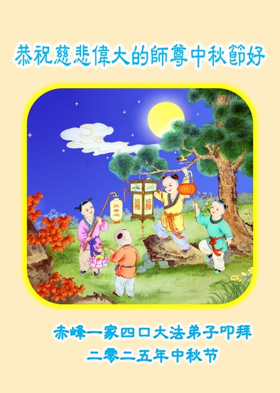 Praktikanti Falun Dafe u autonomnoj oblasti Unutrašnja Mongolija s poštovanjem žele učitelju Li Hongdžiju srećan Praznik sredine jeseni (18 čestitki)