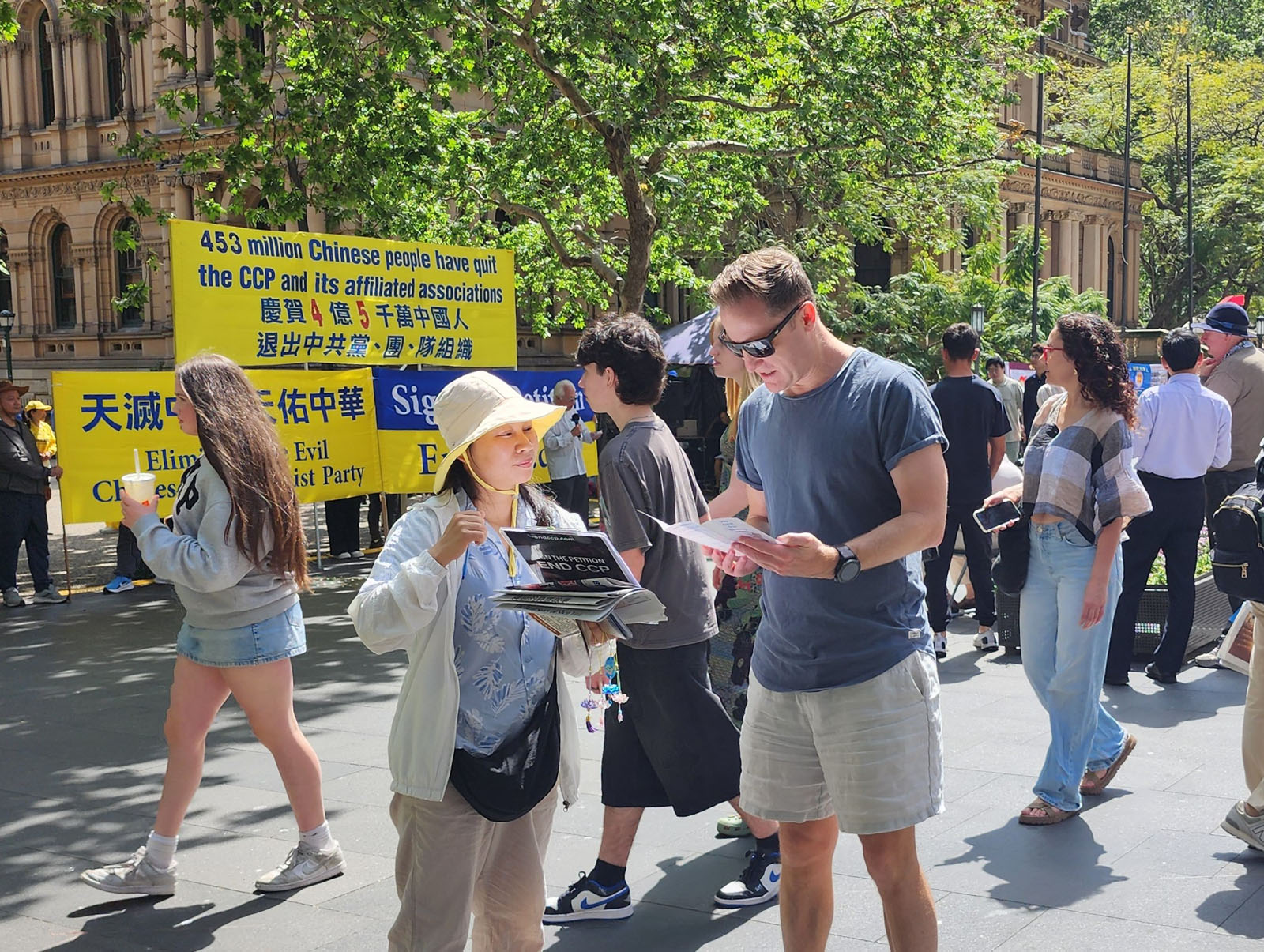 Falun Dafa praktikanti su 28. rujna 2025. održali skup ispred Gradske vijećnice u Sydneyu kako bi proslavili istupanje 450 milijuna Kineza iz Komunističke partije Kine (KPK) i njezinih pridruženih omladinskih organizacija. Gostujući govornici pohvalili su veliki val istupanja iz KPK, nazivajući one dovoljno hrabre da istupe iz organizacija KPK predvodnicima buduće slobodne Kine.