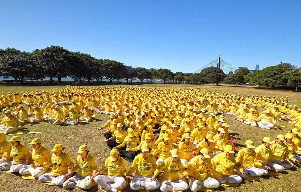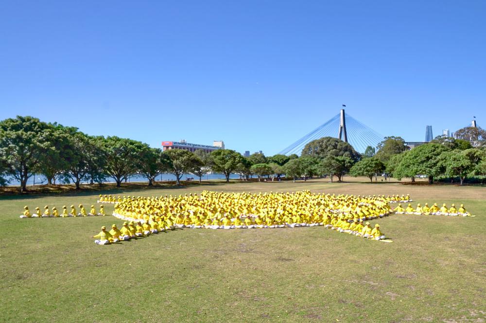 Falun Dafa praktikanti iz svih delova Australije okupili su se u Jubilee Parku u Sidneju 11. oktobra 2025. godine, kako bi formirali sliku ogromnog zlatnog Faluna i zajedno radili vežbe. Želeli su da podele duh Istinitosti, Blagosti i Trpeljivosti sa Australijom i svetom, kao i svoje uverenje u podržavanje slobode verovanja.